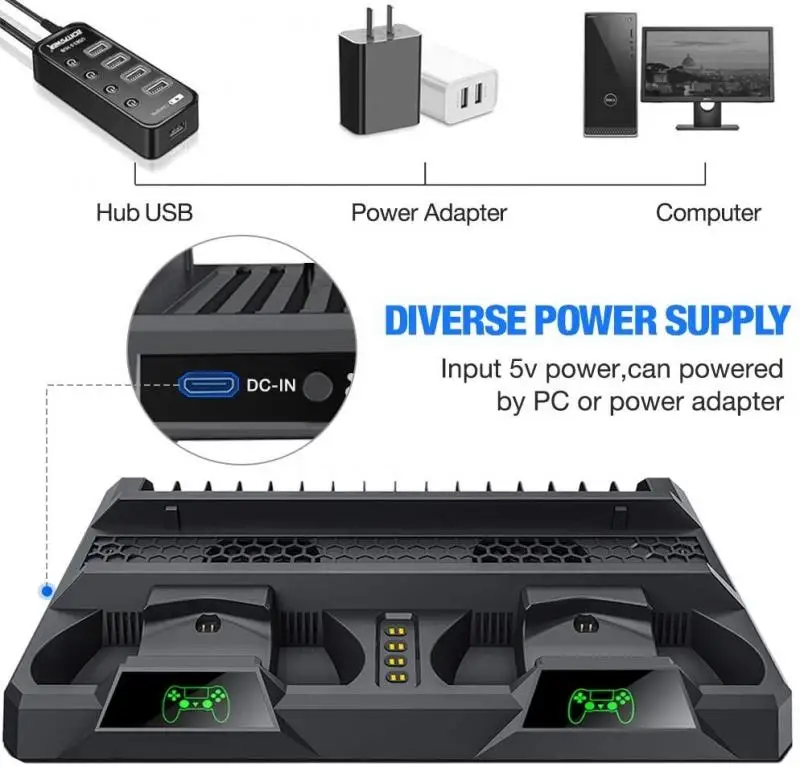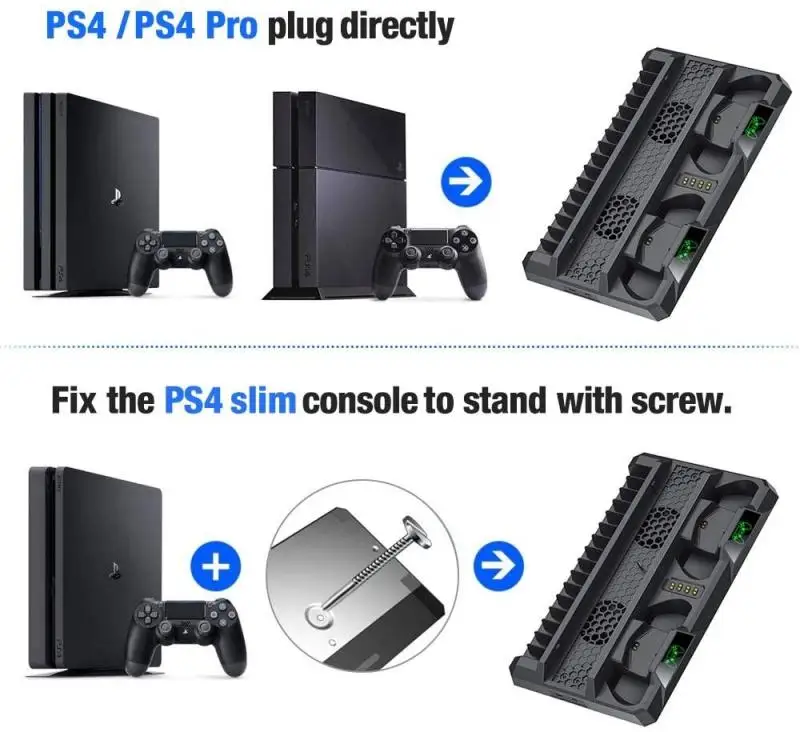 【Охлаждение и хранение вашей консоли PS4, зарядных устройств и игр 】-Многофункциональная подставка PS4, хранение и хорошо подходит для вашей PS4/ PS4 Slim/ PS4 Pro + 2 контроллера + 16 игр. Экономит пространство, удерживает ваши контроллеры, охлаждает ваш ps4 slim/ps4 pro/ps4, хранит игры, сохраняя все аккуратно и аккуратно.