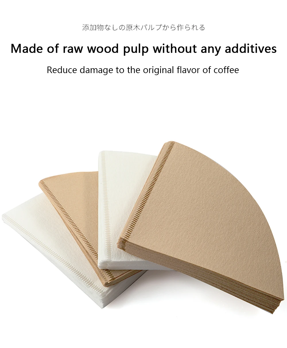 Бренд: Hero Название продукта: фильтровальная бумага для кофе Цвет: основной цвет и белый Чашка: 1-2 чашки, 1-4 чашки Спецификация: 100 ⑤ кор. Материал: бумага из древесной массы Подходит для V60 фильтровальной чашки и американского кофейника V фильтра