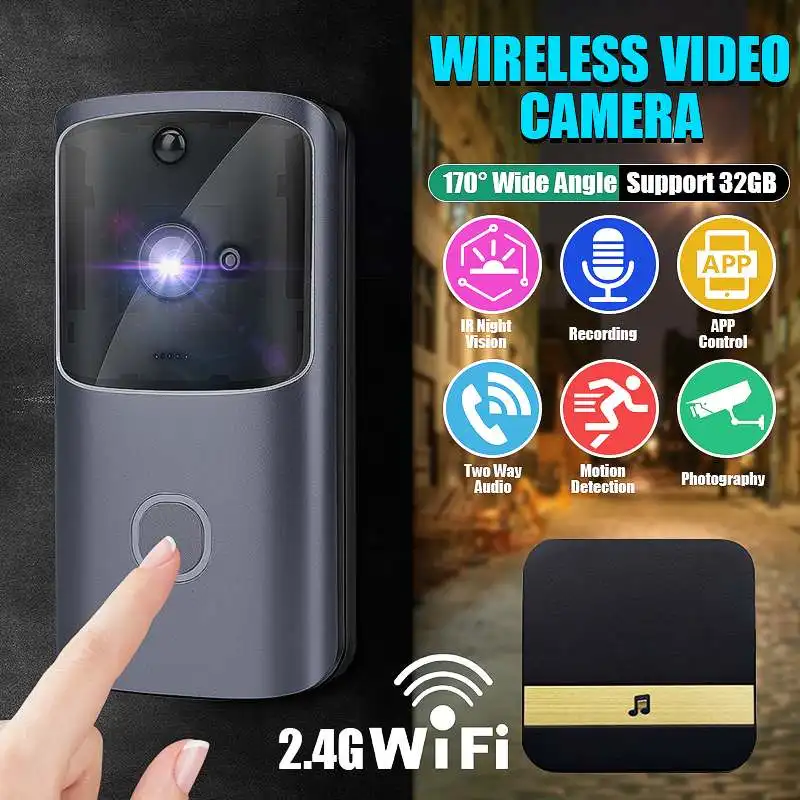 [2,4 ГГц Wi-Fi соединение]: Держать ваш дверной звонок всегда в сети. Вы можете просто сидеть на диване или лежать на кровати, видя и разговаривая с посетителем перед вашей дверью. Пожалуйста, обратите внимание на то, что этот Wi-Fi умный дверной звонок Поддержка 2,4 ГГц Wi-Fi соединение, но не с 5G.