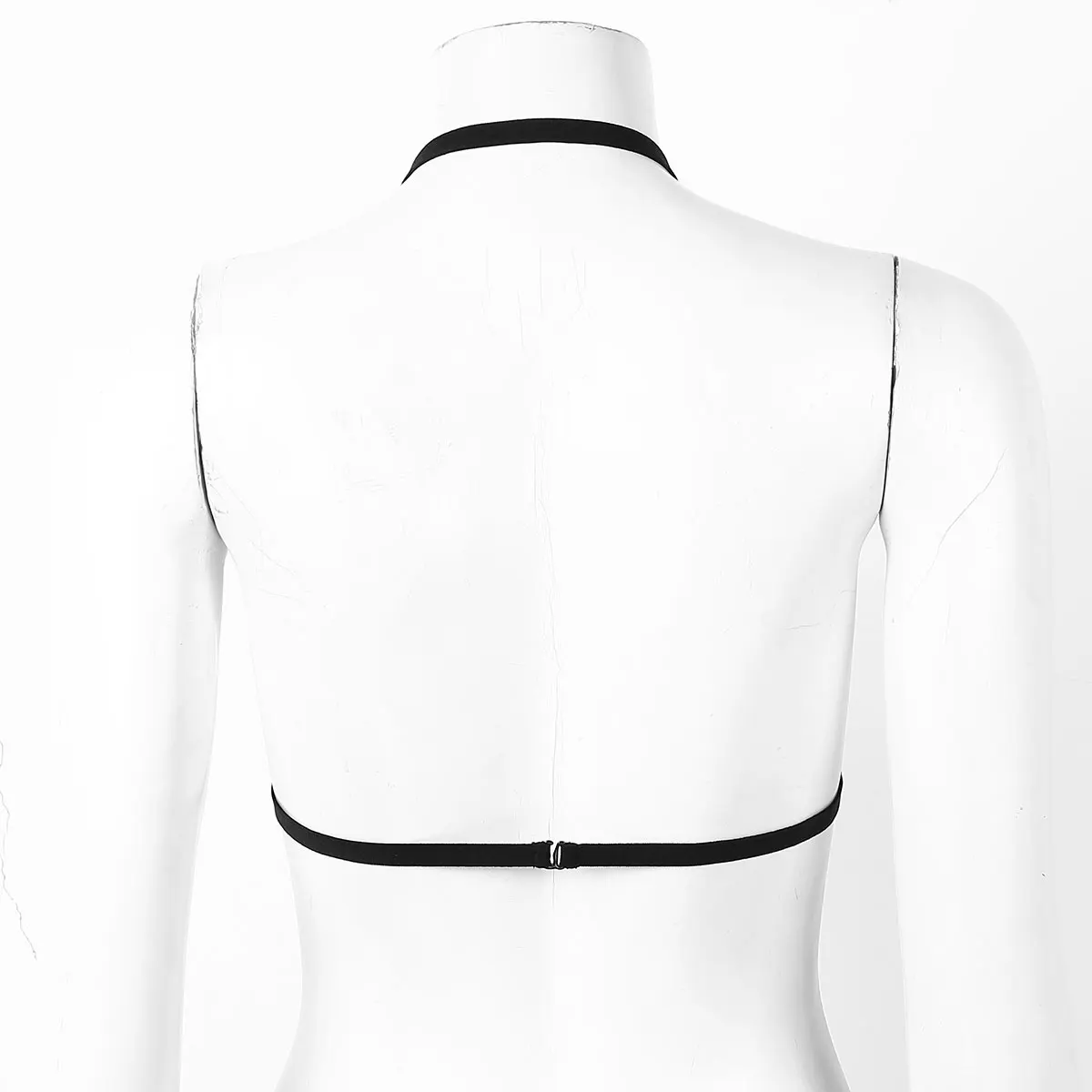 Вырез на шее и открытая спина с эластичными бретелями-спагетти, дизайн спереди с перекрещивающимися ремешками и Открытая грудь.
