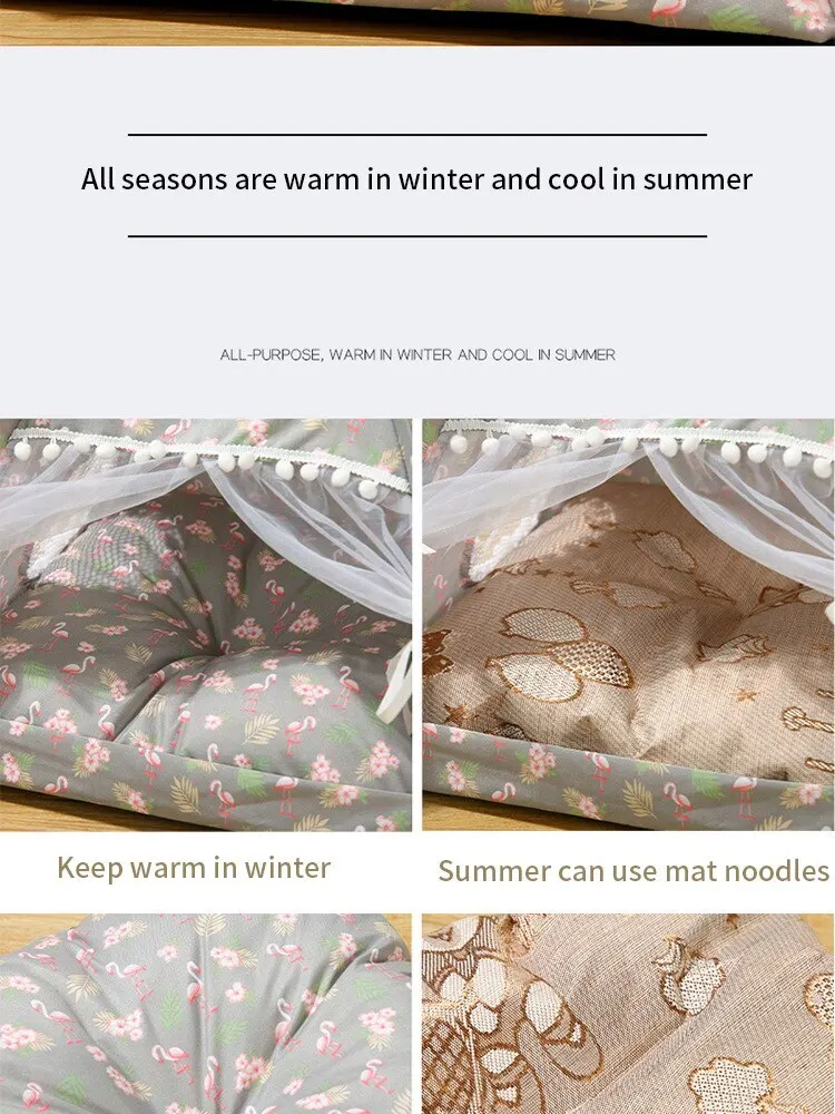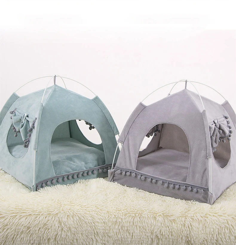 Складная и съемная кровать для кошек, согревающая для дома, домик для кошек и собак с матрасом, клетка для щенков, зимняя теплая Уютная домашняя пещера USD 23,96/Шт/Лот 1