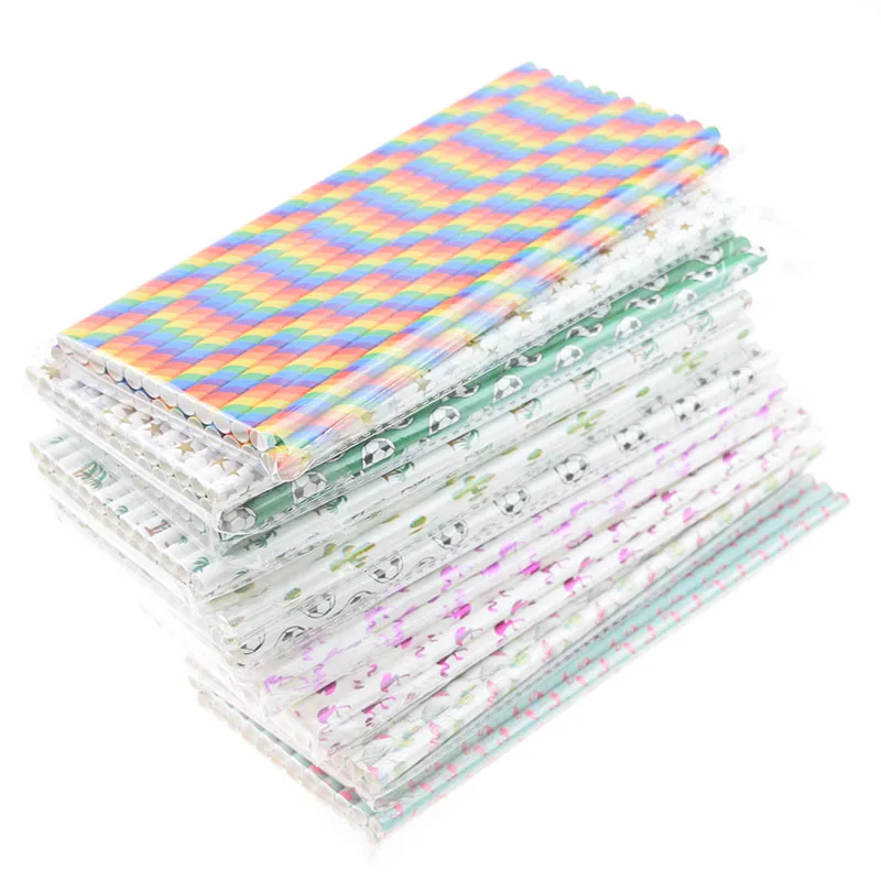 Футбол, радуга, 25 шт./лот, бумажные соломинки для питья, фламинго, одноразовая посуда, день рождения, свадьбы, бара, декор для девушек, вечеринки, сделай сам