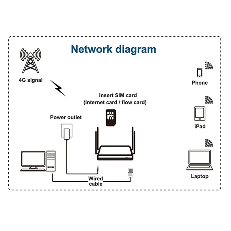 Sup port s 3G/4G сетевой ремешок для европейской sim-карты FDD-LTE: B1/B3/B5/B7/B8/B20/38/40 (версия ЕС) или США FDD-LTE sim-карты: b1/B2/B4/B5/B8/B17 (Американская версия) и 1 порт WAN 10/100 Мбит/с, 4 порта LAN 10/100 Мбит/с.