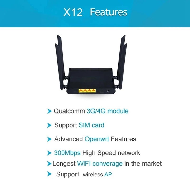 X12 4G/LTE роутер открытый WRT Smart WiFi удлинитель 300 Мбит/с Высокая мощность sim-карта беспроводной роутер CPE EU Plug