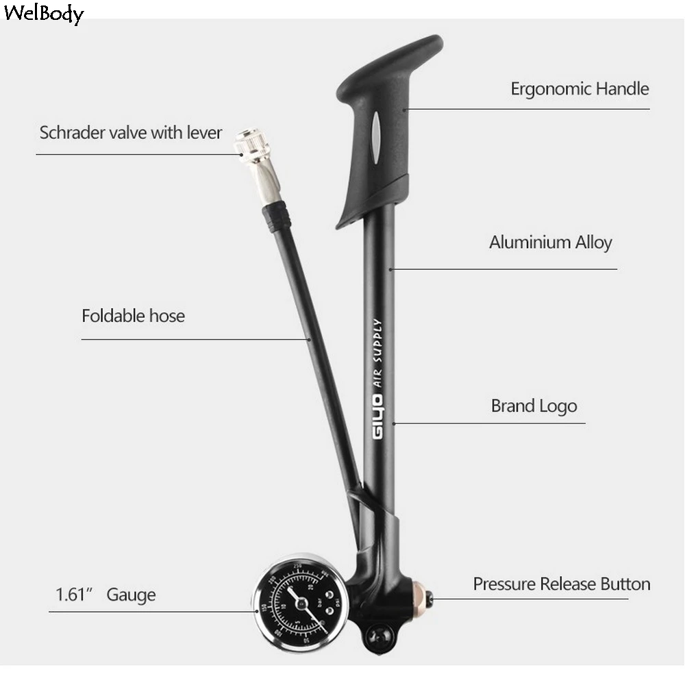 Воздушный амортизатор высокого давления для вилок, задняя подвеска, велосипедный мини шланг, Надувное устройство, Schrader, Велосипедная вилка макс. 300 Psi