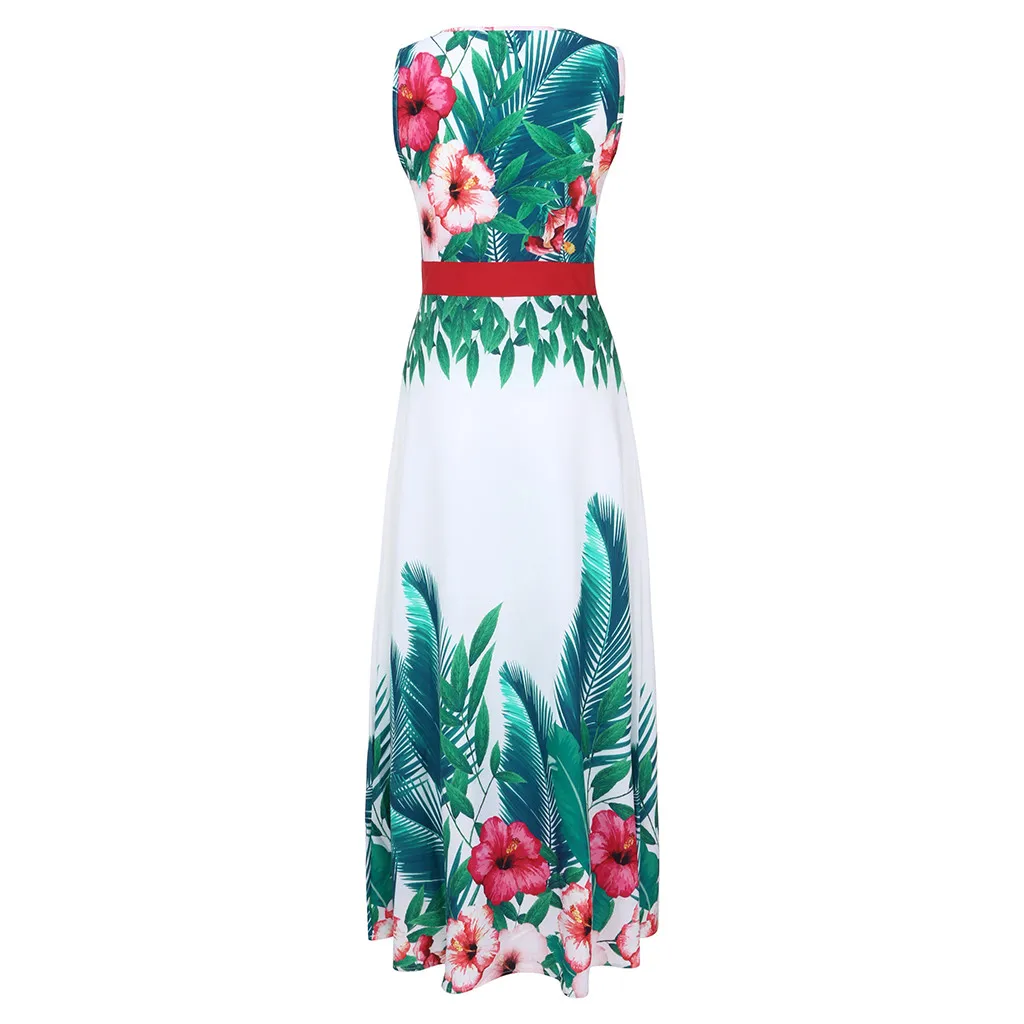 Модное женское летнее платье макси с v-образным вырезом без рукавов с богемным принтом