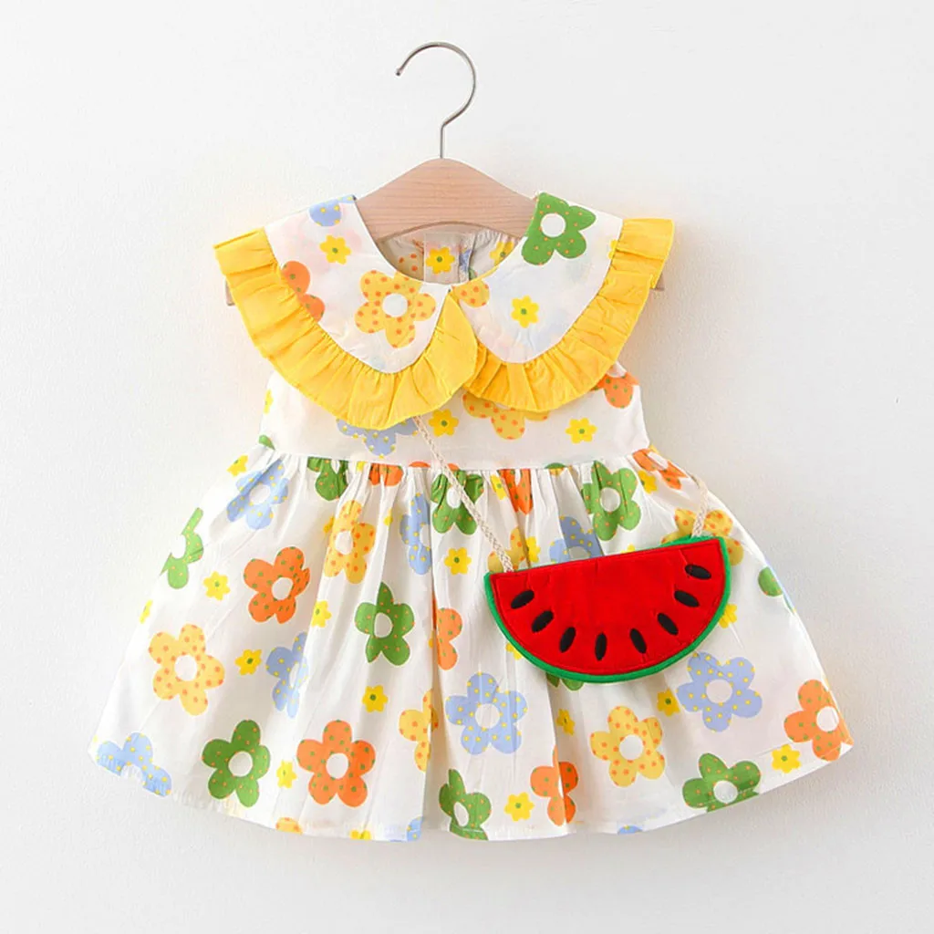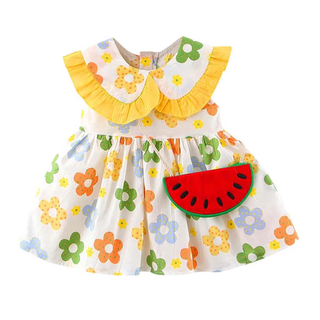 Летние платья принцессы для маленьких девочек с воротником «Питер Пэн», цветочным рисунком и арбузом