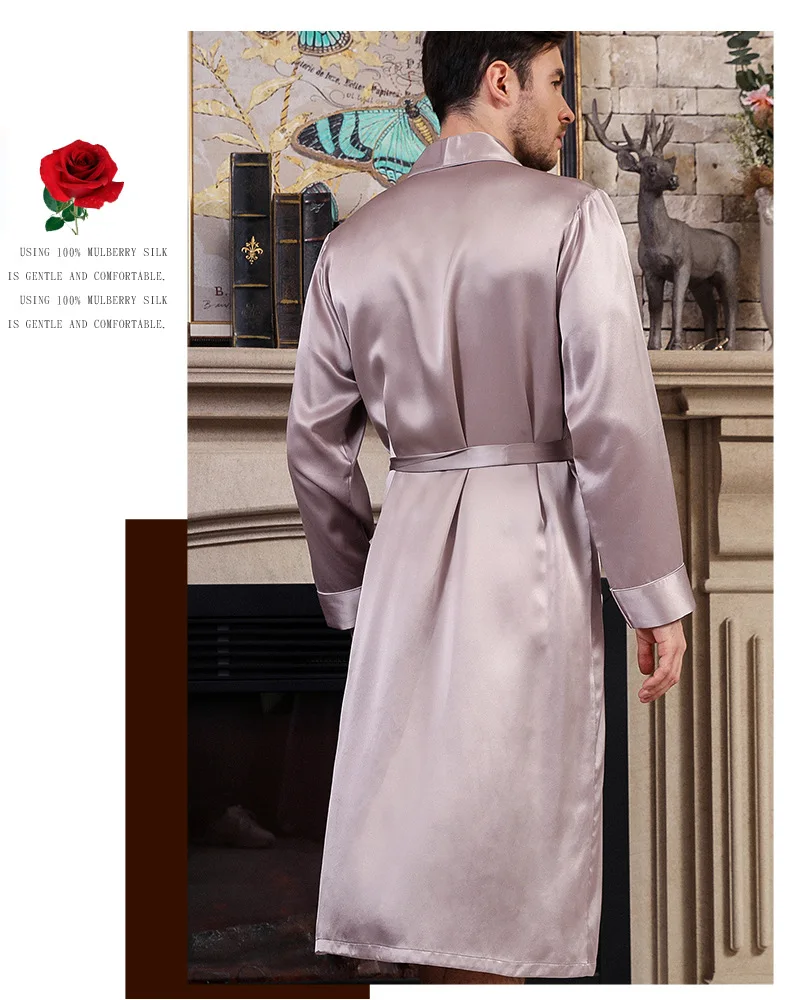 Однотонная мужская пижама из натурального шелка с длинными рукавами, Высококачественная пижама из натурального шелка, мужские халаты S5625