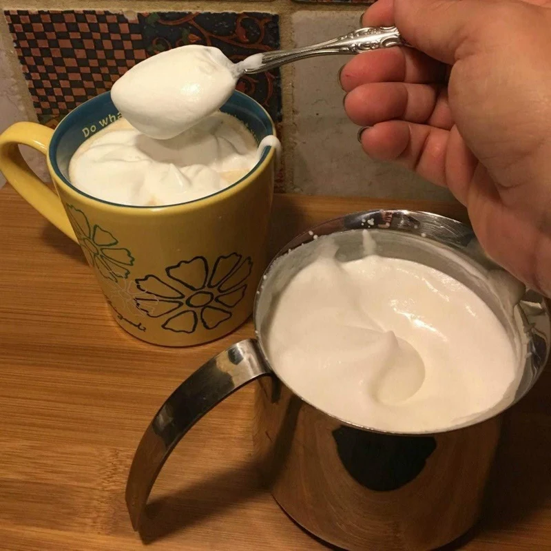 Наш молочный пенообразователь приносит вам портативное ручное молочное Пенообразователь для замороженного молока. Если вы любите Утренний кофе с большим количеством пены и пены, то вы, безусловно, хотите иметь нашу волшебную палочку дома или ваш капучино в стиле кафе.