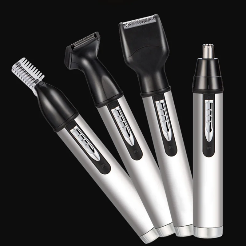 Характеристики: набор триммеров 4 в 1, содержит 4 головки резака, их можно снимать и стирать, легко чистить, более гигиенично. Острая режущая головка из нержавеющей стали, безопасная и быстрая резка, не повреждая кожу, и волосы не застревают.