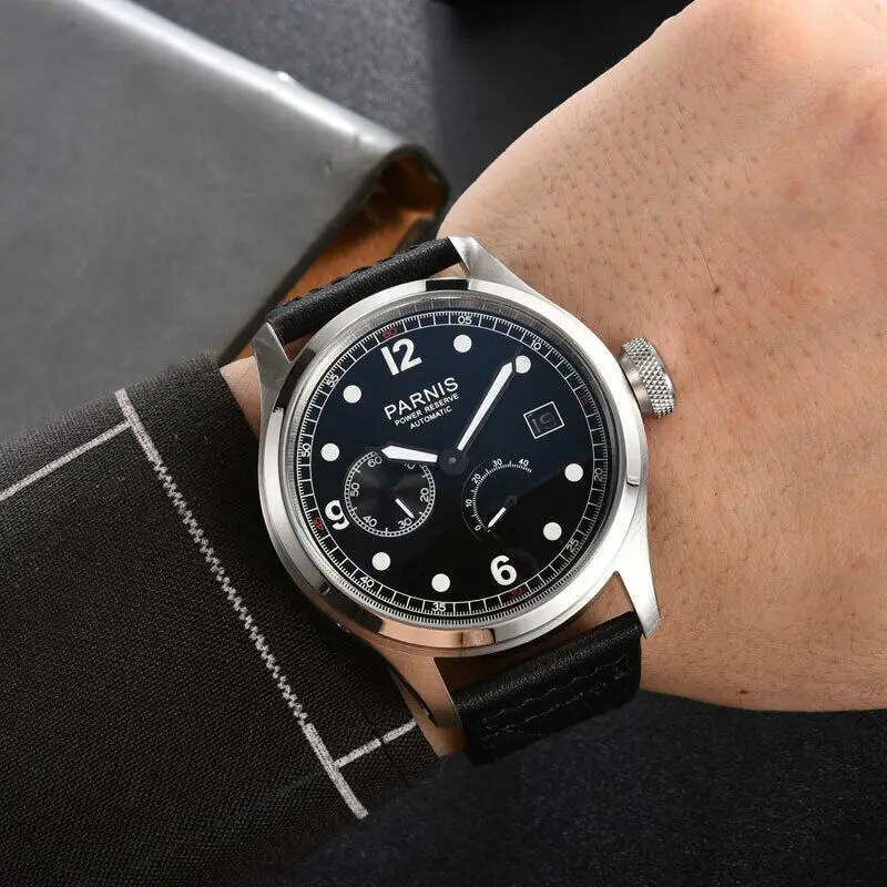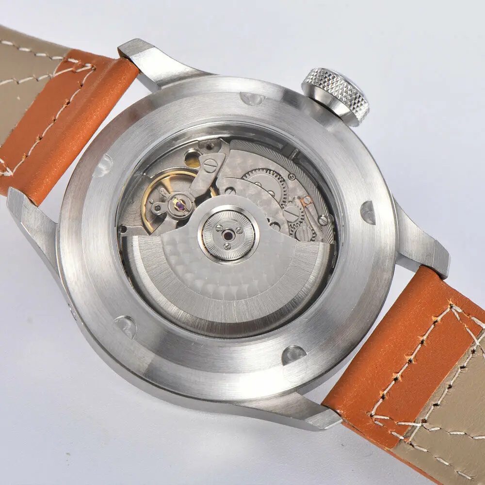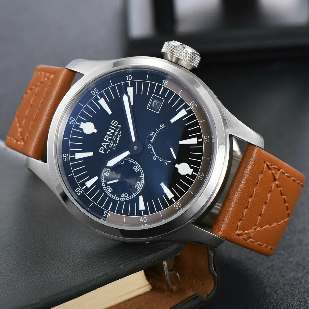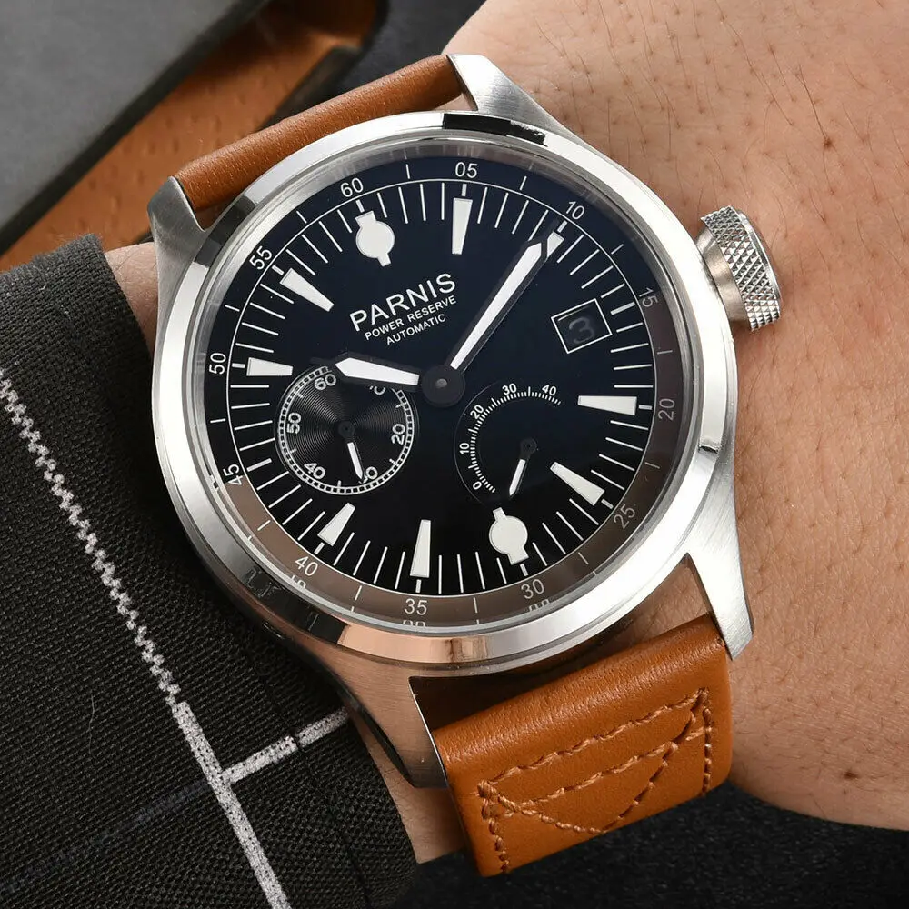 46 мм Pani серый/черный циферблат коричневый кожаный ремешок ST 2530 Дата светящиеся механические мужские часы запас мощности автоматические мужские часы отправка коробка