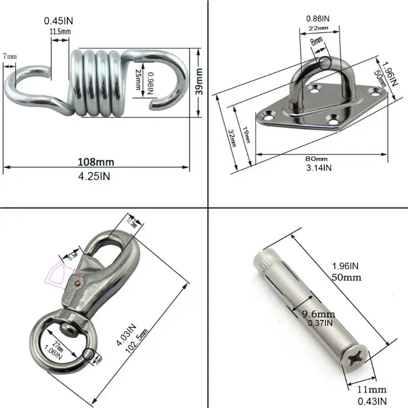 Applications: Swing, hanging chair fixed suspension, medium and large dog leash connection