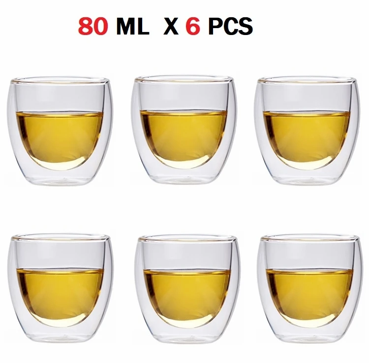 6 шт./партия 80 мл термостойкая чашка для чая с двойным дном стеклянная Бессвинцовая стеклянная кружка для вина, виски, молока стеклянная кружка для кофе, стеклянная кружка, набор посуды для напитков