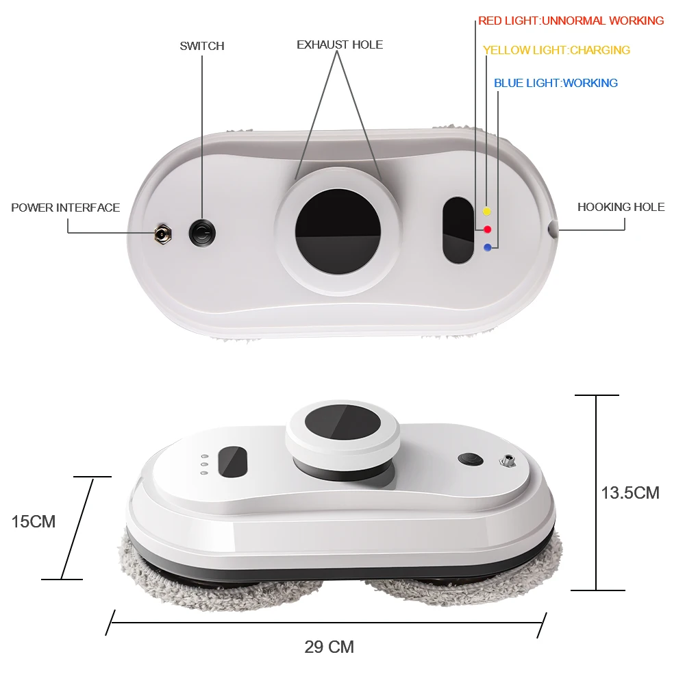 1. Подождите 20 секунд после запуска, пока синий светильник не прекратит мигать, затем начните работать. Потому что роботу нужно 20 сек, чтобы обнаружить стеклянную плоскость. 2. Привязать веревку безопасности при использовании, предотвратить падение с большой высоты. 3. Распылите немного воды на край швабры при работе, будет лучше эффект. 4. Когда вы получите товар, пожалуйста, свяжитесь с нами, если у вас есть какие-либо вопросы, мы решим его для вас. (Когда вы не знаете, как использовать его, я дам вам ответ и отправлю вам операционное видео) 5. Функция: спланированный гироскоп/автоматическая односторонняя Очистка/автоматическое возвращение в исходное положение