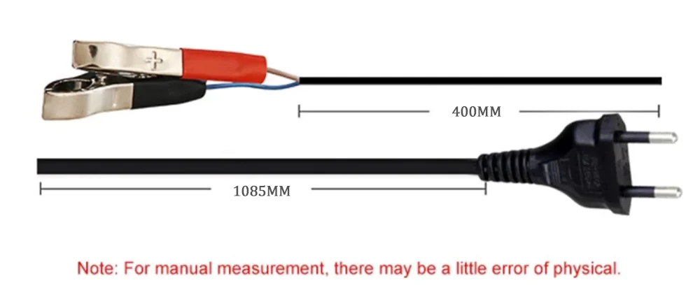 Входное напряжение: 100-240 В переменного тока, 50-60 Гц Номинальная мощность: 12V 8A 24V 4A Минимальный Начальное напряжение: 2,0 V Диапазон батарей: 6-150Ah Тепловая защита: 65'C +/-5'C Эффективность: приложение. 85%. Совместимые стандарты: CB,CE, IEC60335, EN61000, EN55014 Размер (L×W×H): 170 × 98 × 58 мм Вес: 560 г Длина кабеля переменного тока: 110 см, длина кабеля постоянного тока: 60 см. 1 комплект = 1 зарядное устройство + 1 Руководство пользователя