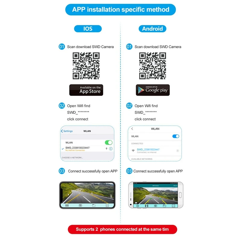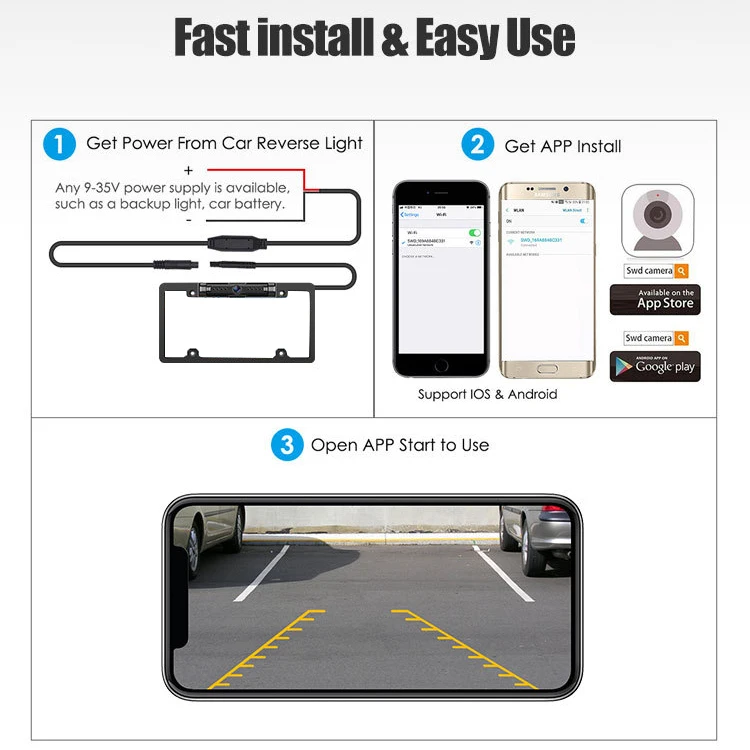 Wifi задняя камера: Bulit-in цифровой Wifi сигнальный чип, с резервной линией использовать для резервного копирования автомобиля, его можно удалить вручную