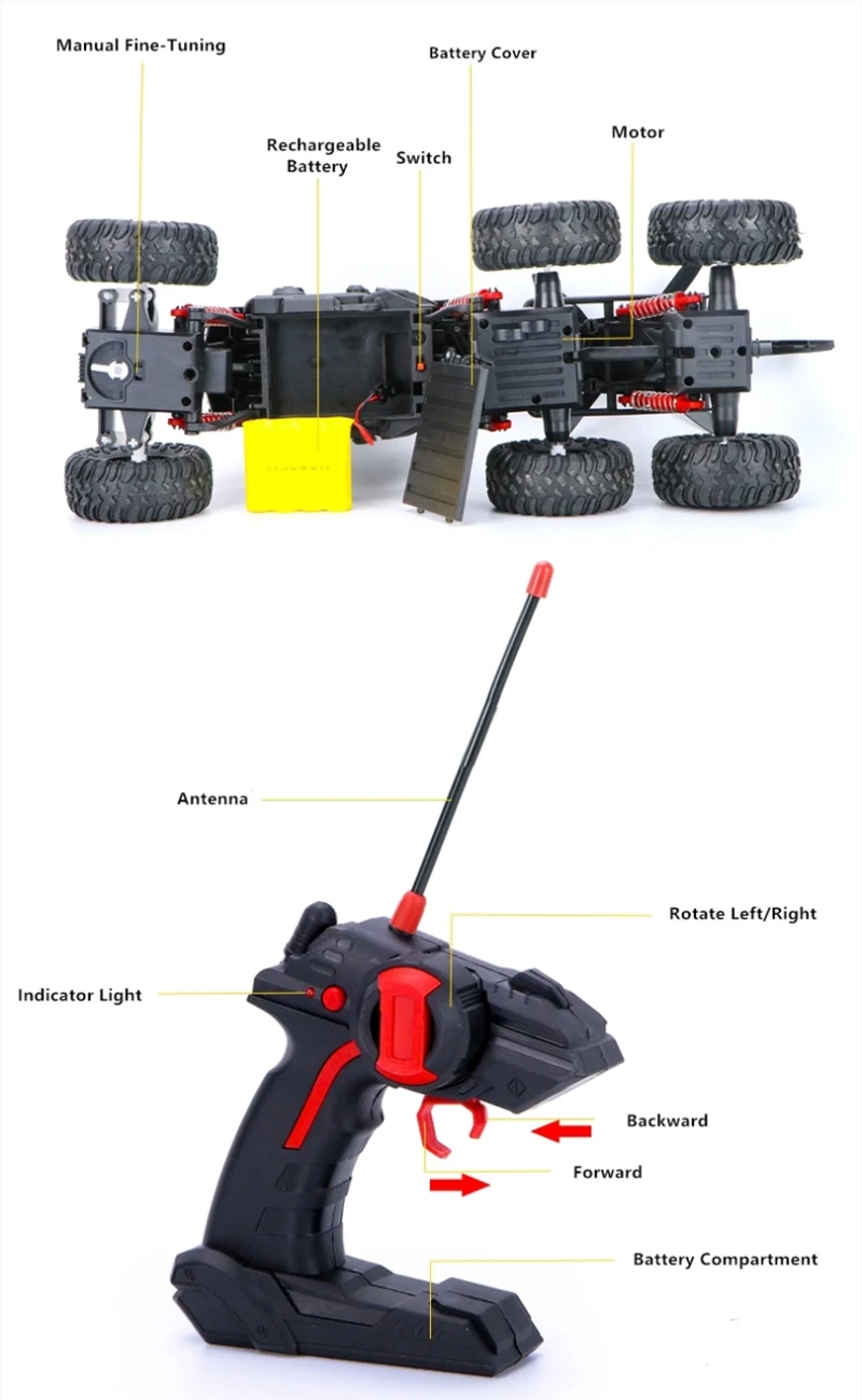 Вакуумное резиновое колесо: прочная поверхность обеспечивает надежное сцепление.Передний прохладный свет: новый обновленный светильник.Независимый амортизатор подвески: двойная координация пружины и демпфирование для достижения низкого сопротивления.Имитационная модель самолета винт может быть отсоединена от автомобиля с дистанционным управлением.Пульт дистанционного управления типа 2,4G: Простое управление рулем и скоростью.Устройство точной регулировки слева и справа: Отрегулируйте отклонение направления и позвольте автомобилю двигаться прямо.Посылка тация: