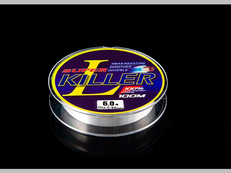 Мы используем более строгий стандарт производства для рыболовной лески с фторуглеродным покрытием Killer, включая сырье и производственный процесс. Именно поэтому киллер имеет более сильное напряжение в диаметре тоньше.