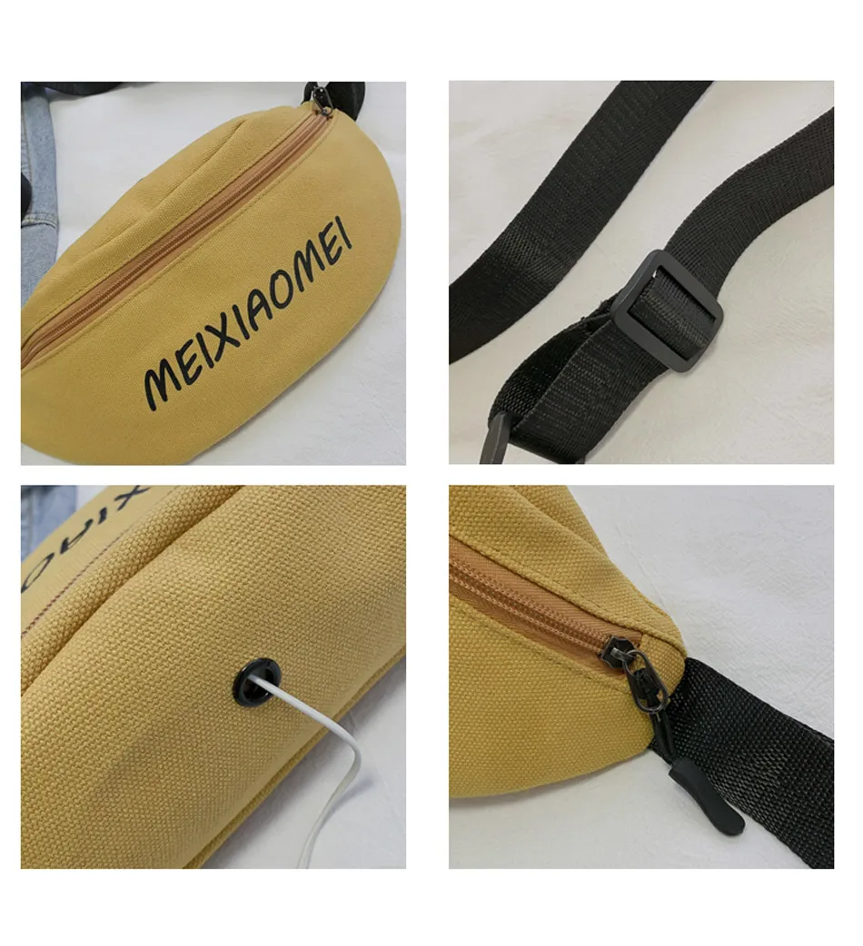 3 цвета поясная сумка: черный, белый, желтый Поясная сумка имеет 1 карман на молнии и отверстие для наушников Размеры: 32*14*8 см, ремень ожидания 120 см Макс. Материал: холст