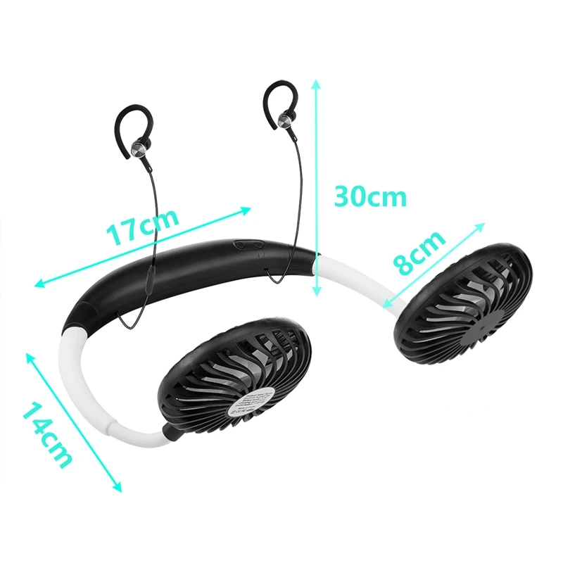 Стильный дизайн без рук: Этот креативный портативный вентилятор можно повесить вокруг шеи и отпустить руки для более удобной работы. Двойная головка вентилятора имеет гибкое вращение на 360 ° для более мощного воздушного потока. Может использоваться в качестве настольного вентилятора для улучшения циркуляции воздуха в помещении. Подходит для занятий спортом на открытом воздухе, рыбалки, гольфа, путешествий, кемпинга, офиса, в помещении, пеших прогулок, велоспорта, детской коляски и многого другого.