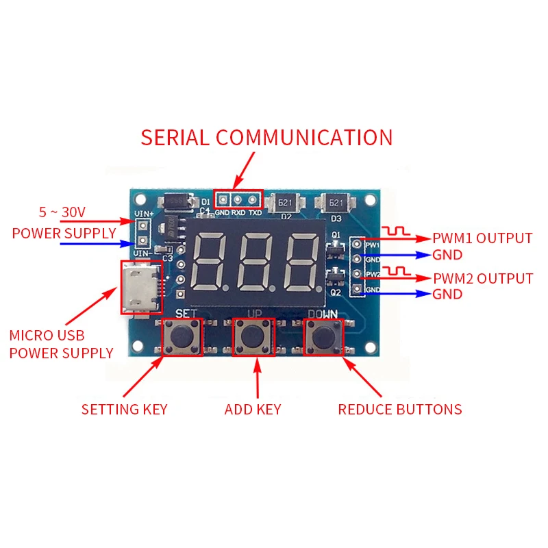 Рабочее напряжение: 5-30 в, Поддержка питания micro USB 5,0 в;