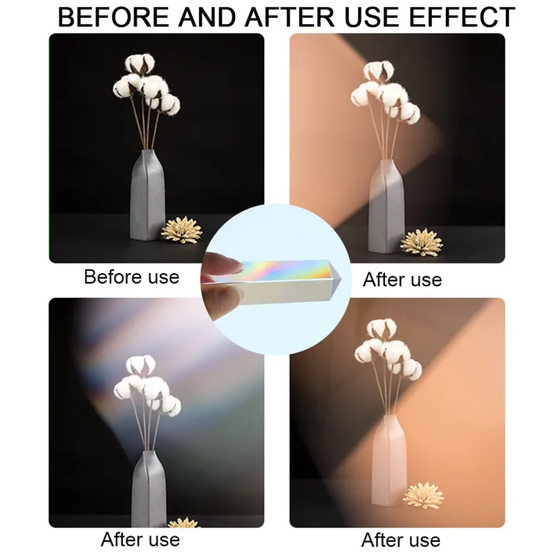 << Multifunction: Create a rainbow effect in your photo using the light refraction technique below. You also can remove an unwanted element in your background using your new prism camera filter to create a unique photo.