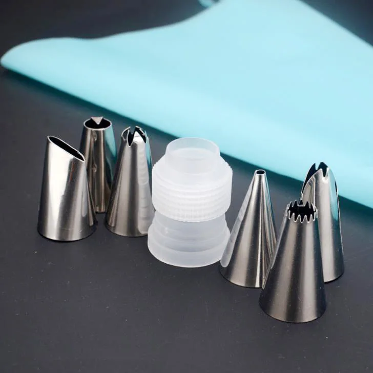 1 кондитерский мешок и 6 сопло из нержавеющей стали и 1 конвертер