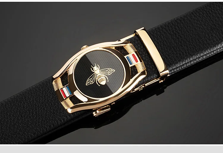 Бренд: delivery Подходит: для мужчин Название: пояс Пряжка ремня: Автоматическая пряжка ремня Материал пряжки ремня: цинковый сплав Цвет: черный + золотой, серебристый, черный Материал: натуральная кожа Элементы пряжки: часы, пчела Применение: молодость, молодость, средний возраст Стиль: деловой/Повседневный Тип: Модный/простой Процесс: мягкий Длина: 105-130 см