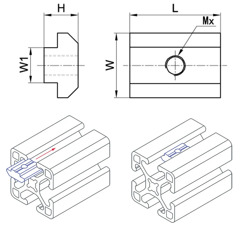 ** Простота в использовании: быстро и легко скользить в Т-образное отверстие алюминиевого профиля.