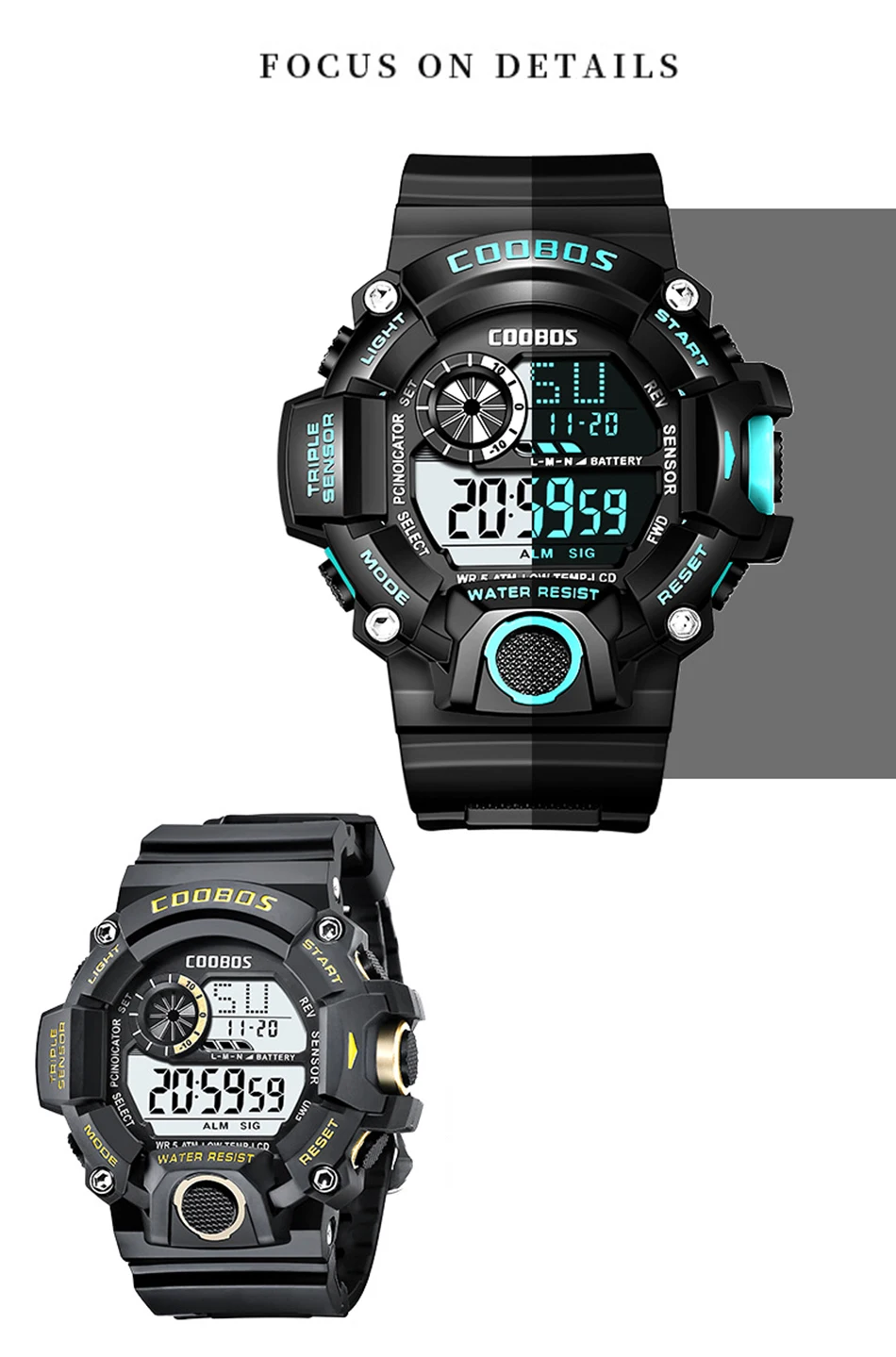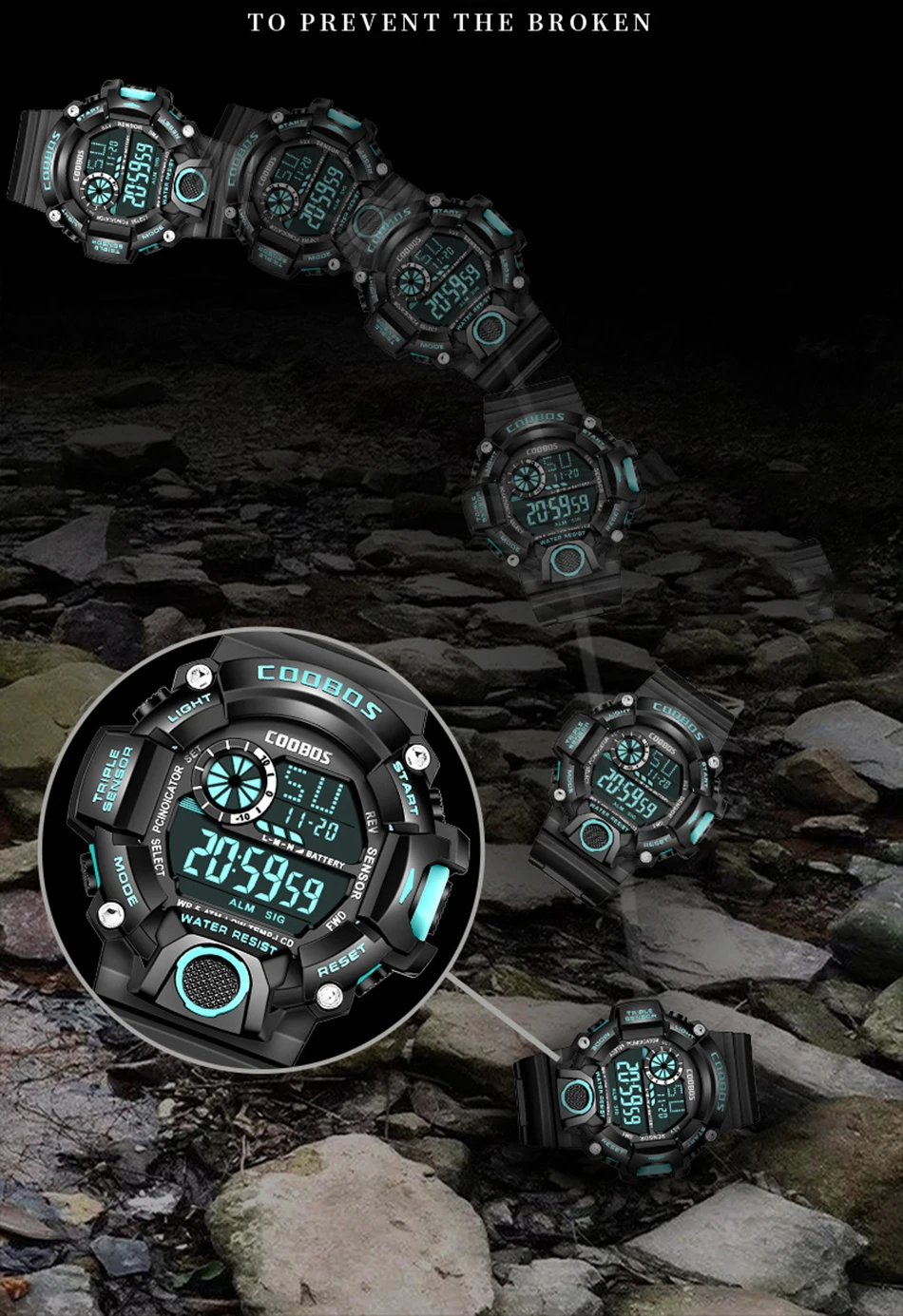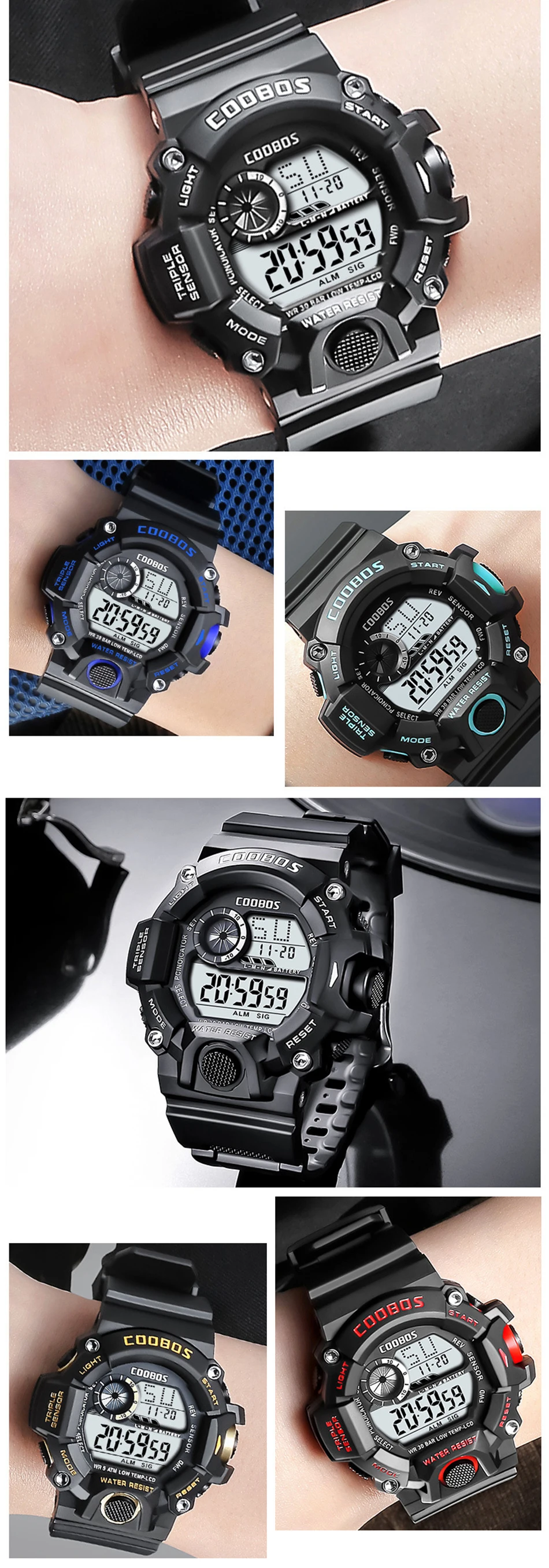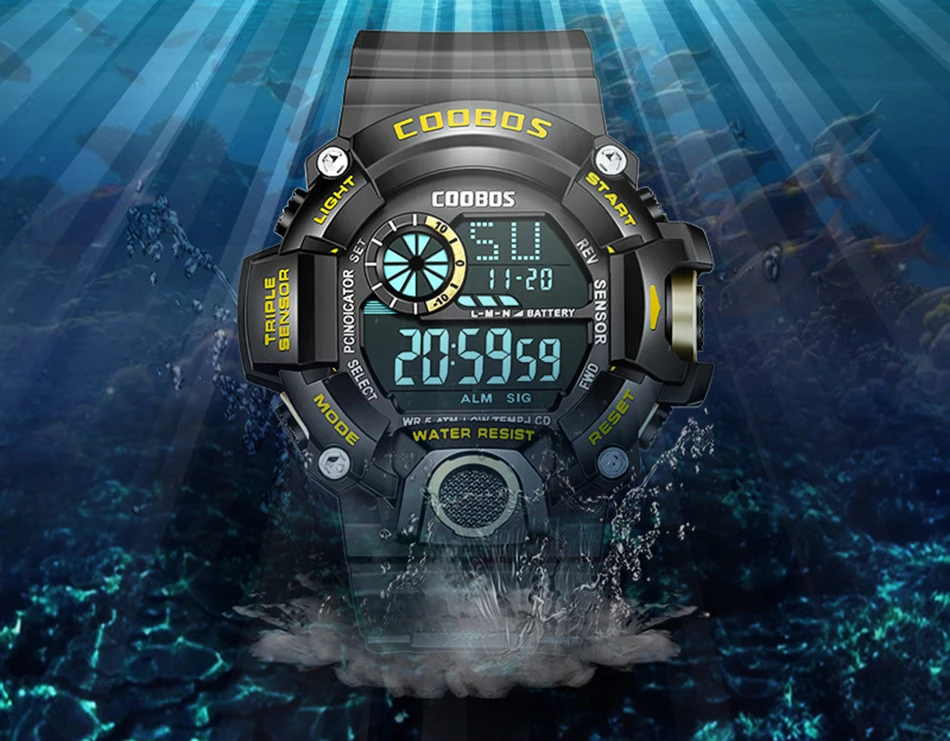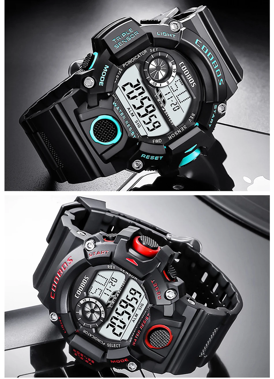 Мужские многофункциональные спортивные светодиодные светящиеся электронные часы с большим циферблатом и будильником