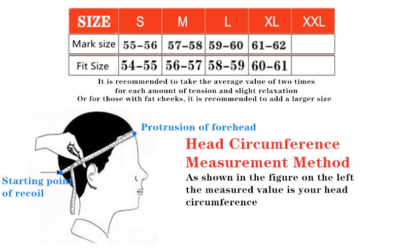 Пожалуйста, выберите шлем в соответствии с размером, указанным в таблице размеров.