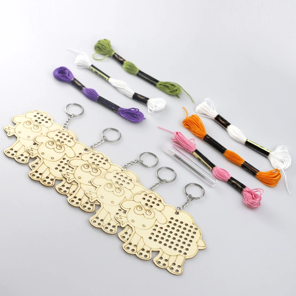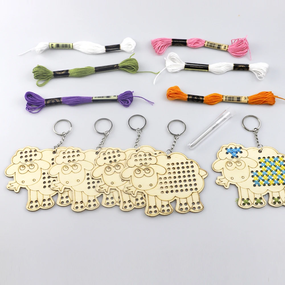 5 шт Милый Мультфильм Деревянная овца крестиком DIY брелок ремесло подарок