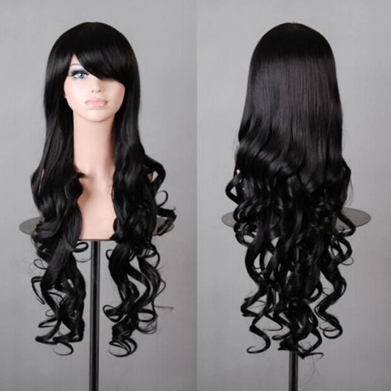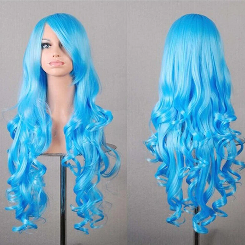 80 см Высококачественный кудрявый объемный волнистый парик Аниме Косплей Костюм синтетические волосы фиолетовые Серебристые Серые Синие красные парики для женщин