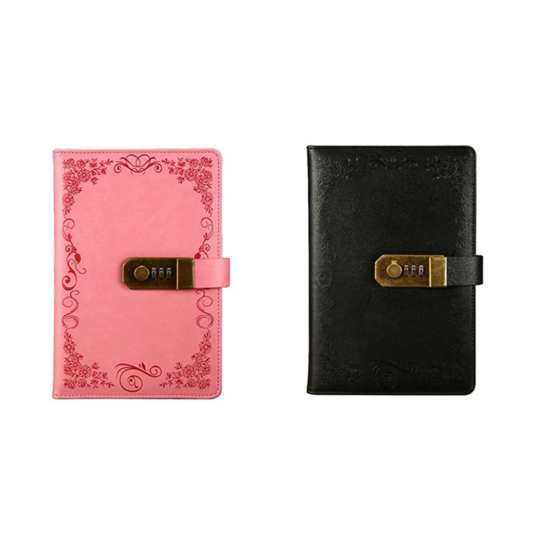 2x черный/розовый дневник с замком, записная книжка A5, винтажная Запираемая бумага из искусственной кожи, записная книжка, дневник, еженедельная школа планирования Sta