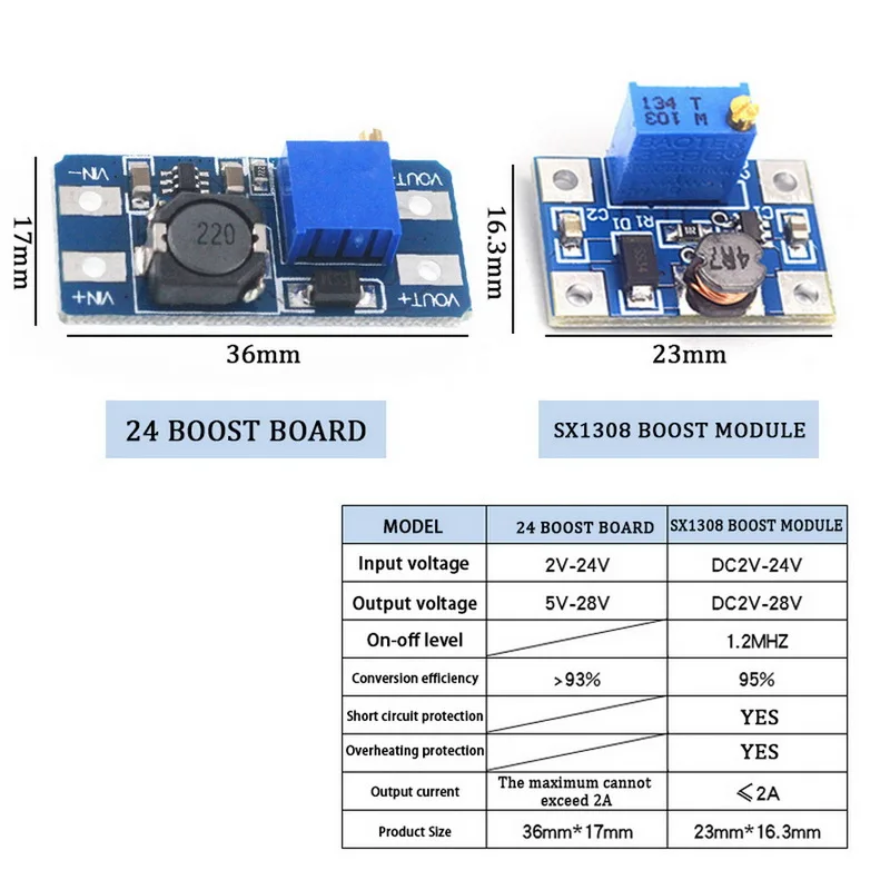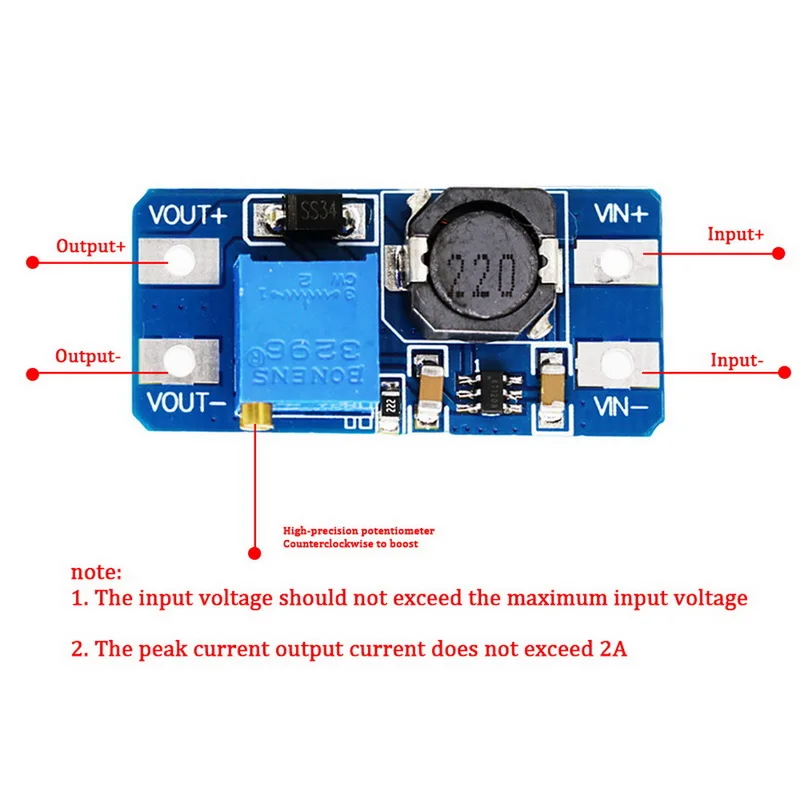 <Простота в использовании: модуль IN + и-после 2 ~ 24 В, при регулировке потенциометра можно регулировать выходное напряжение, выходное напряжение больше входного напряжения