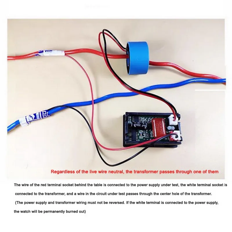 <Проводка: во-первых, подключите ток тока, затем напряжение переменного тока, пожалуйста, не прикасайтесь к задней части этого метра после подключения напряжения, или вы получите Электрический шок.