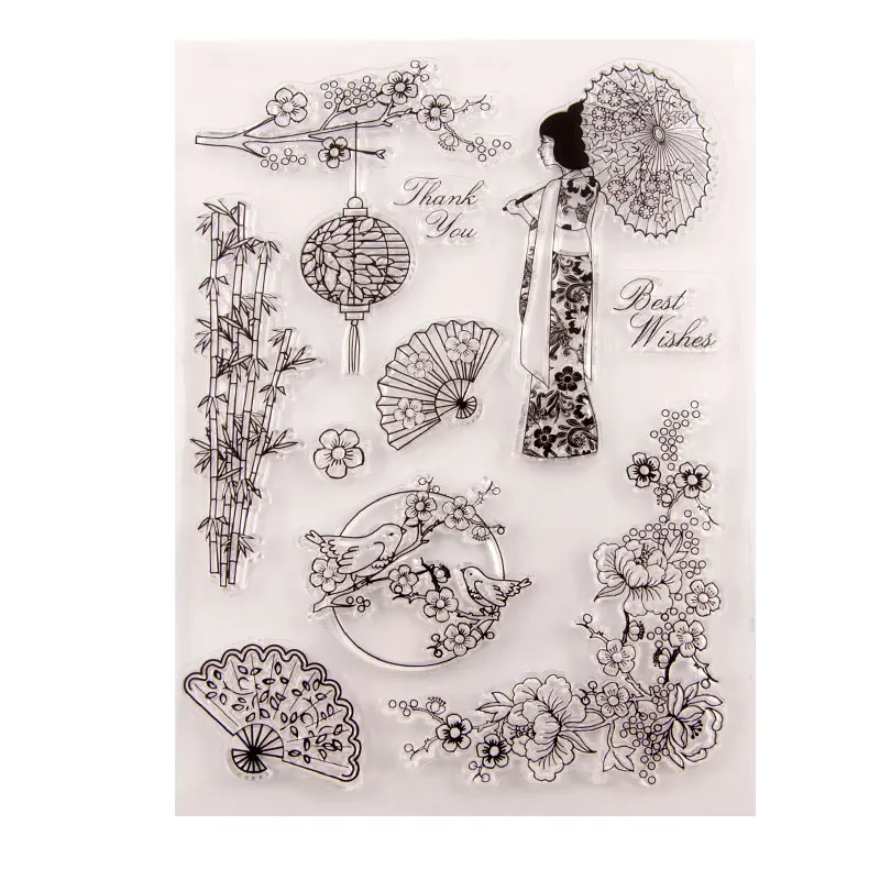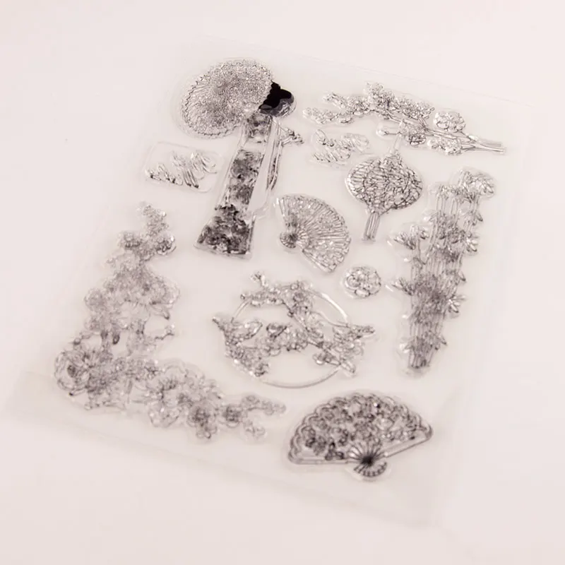 Sakura Kimono Fan Transparent Clear Silicone Stamp/Seal for DIY Scrapbooking/photo Album Decorative Clear Stamp Sheets