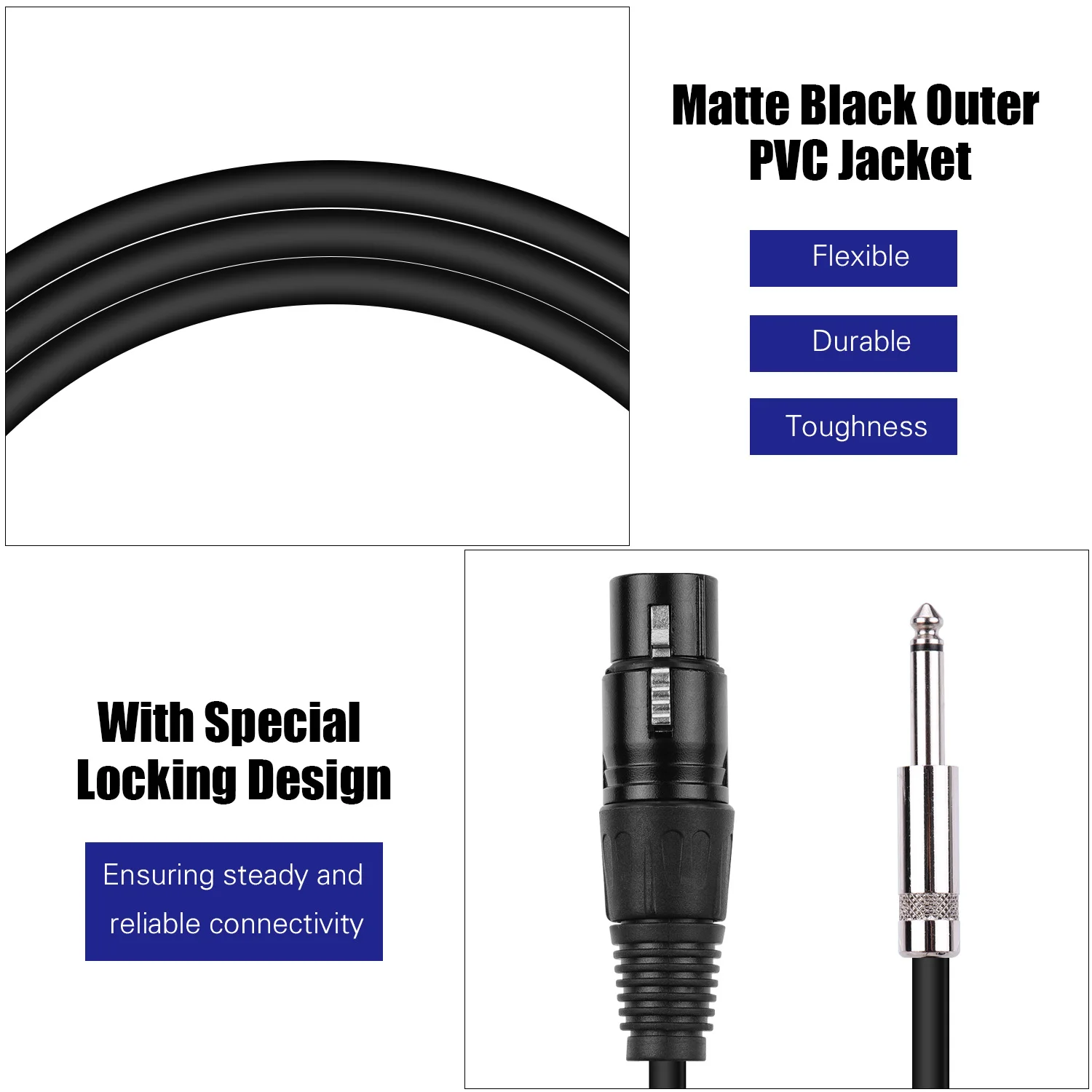Стандартный 3-контактный разъем XLR на 1/4 дюйма TS моно-штекер jack, совместим с ручными динамическими проводными микрофонами.