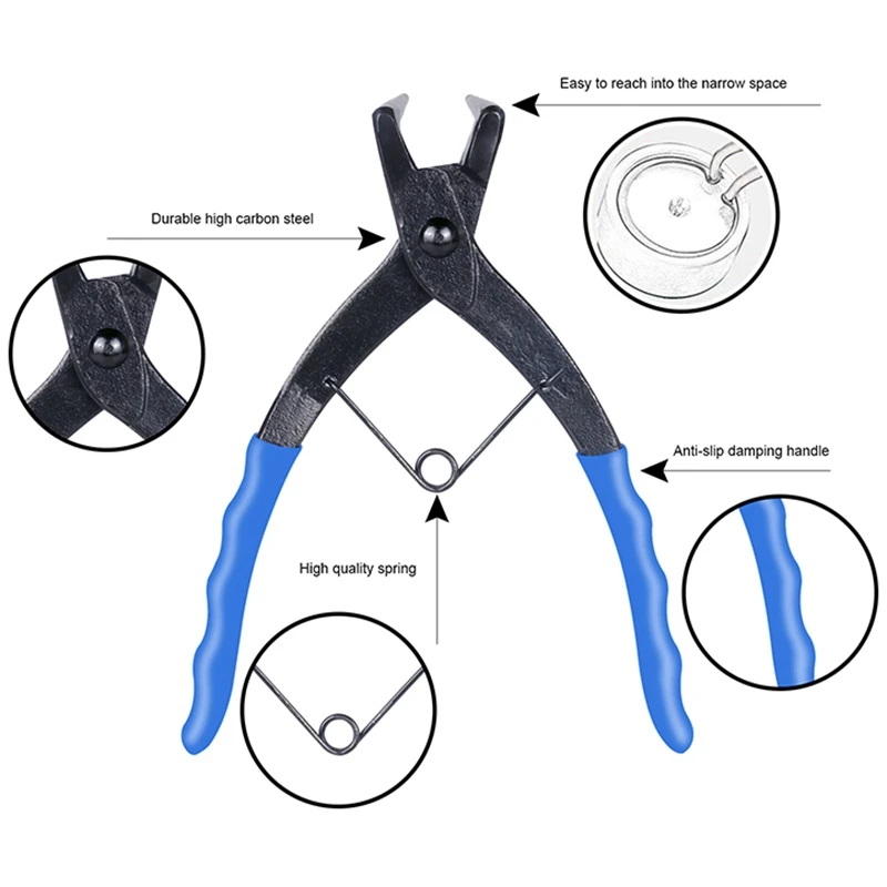 Плоскогубцы с изогнутым носом на 90 градусов могут быть использованы для удаления и установки небольших и средних внутренних зажимных колец длиной до 2 дюймов/53 мм на гидравлических главных цилиндрах на мотоциклах/автомобилях/грузовиках.
