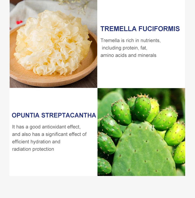 Состав: вода, глицерин, ксантановая камедь, карбомер, пропиленгликоль, динатрия ЭДТА, аллантоин, пег-40 гидрогенное касторовое масло, триэтаноламин, CI 19140, CI 16255, CI 42090, camellia (CAMELLIA JAPONICA) экстракт цветка, экстракт овса (AVENA SATIVA), экстракт Tremella (TREMELLA FUCIFORMIS), скрученный кактус (OPUNTIA STREPTACANTHA) экстракт стебля.