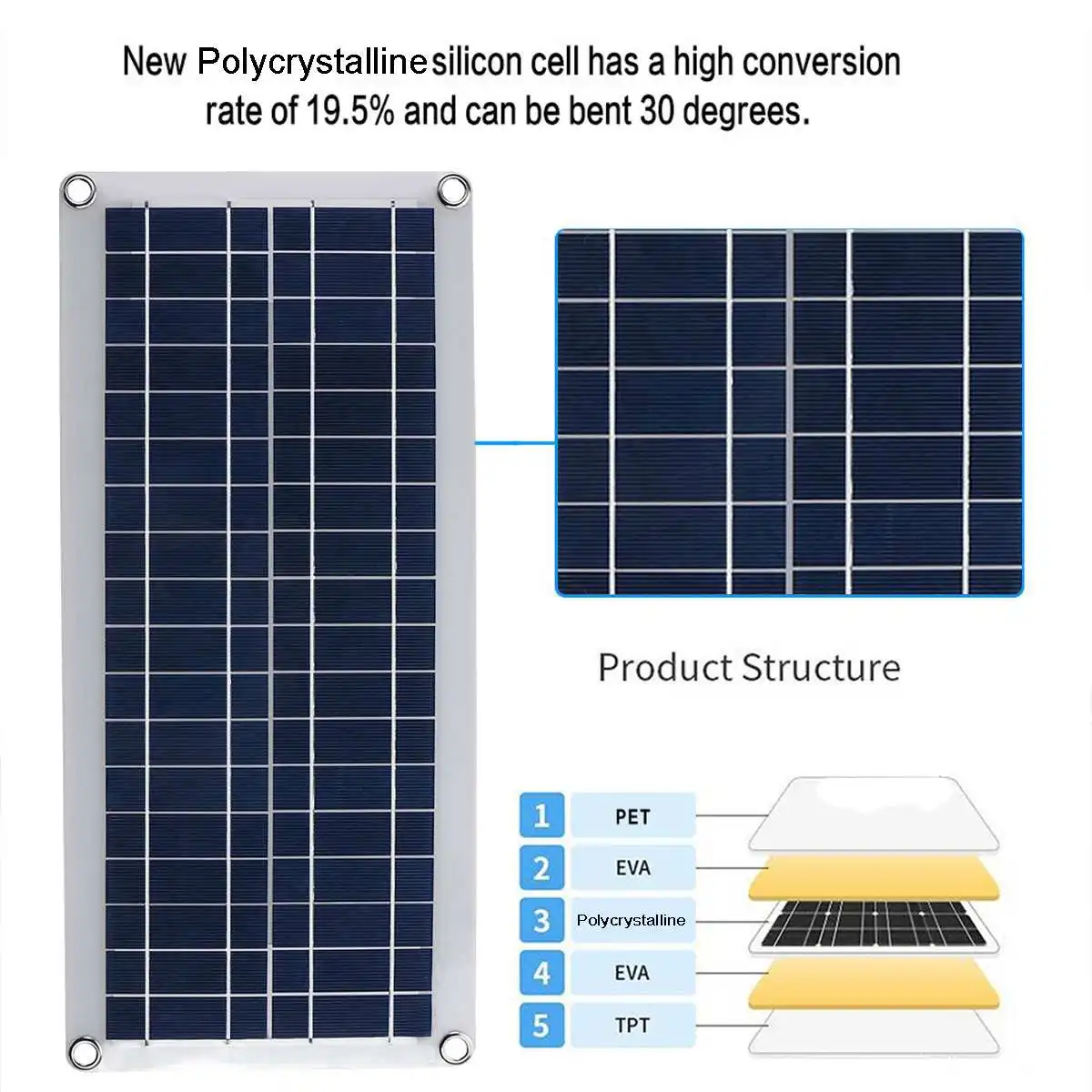 5 слоев ПЭТ + 2xEVA + фотосинтеза Кремний + + ПЭТ ламинированные