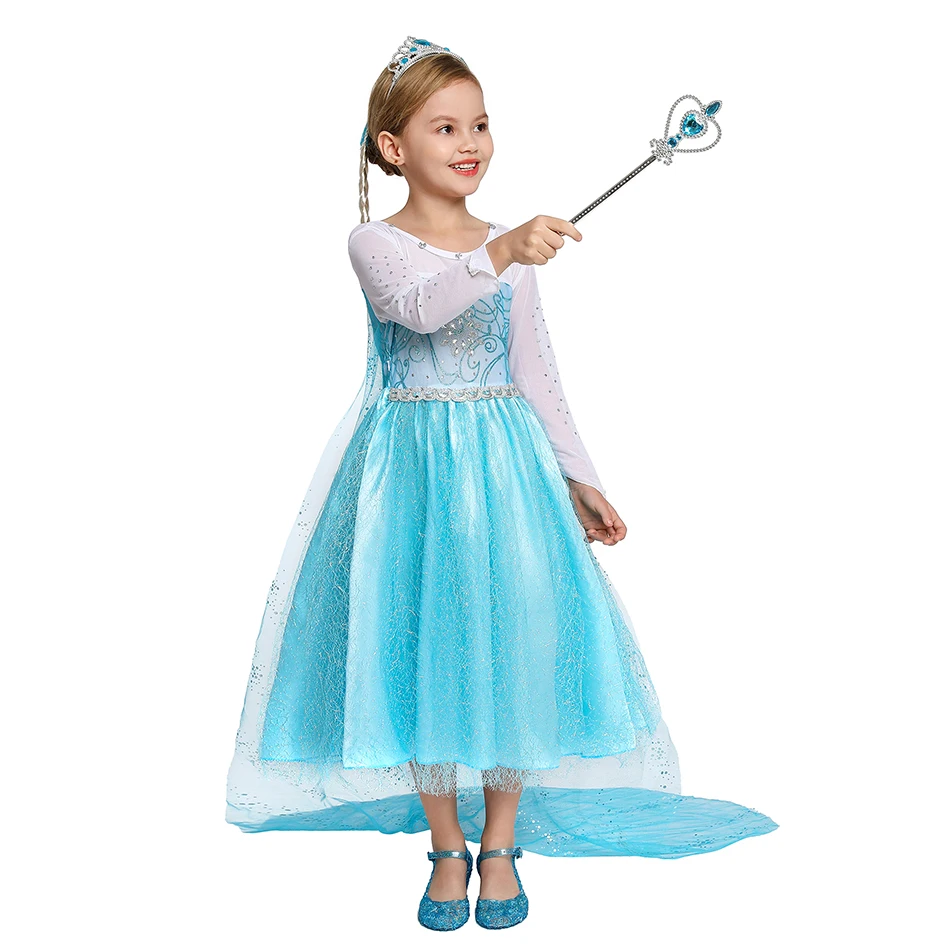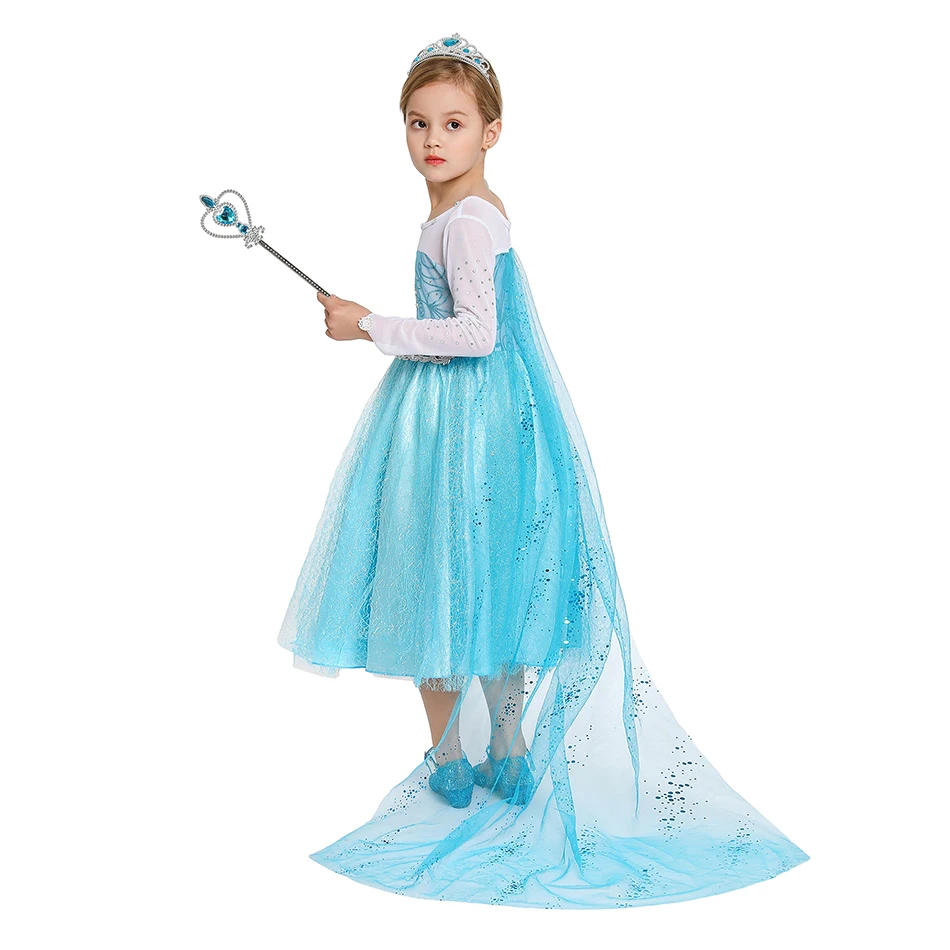 Костюм Эльзы 2020; 2 платья; Костюм; Рождественская Одежда для девочек; Детская одежда принцессы для костюмированной вечеринки на свадьбу и день рождения
