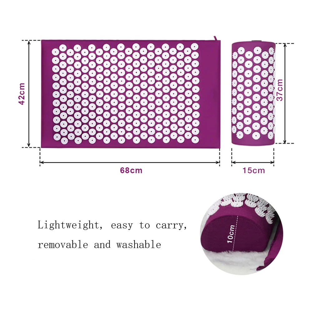 Разработан, чтобы сделать растяжение спины легким, безопасным, доступным и приятным. Акупунктурный массаж забота о вашем позвоночнике, снимает стресс, увеличивает кровообращение. Пластиковые массажные точки для большей акупунктуры массажа, выберите их для йоги или сна. Хлопковый материал и губка внутри, легко использовать для домашнего лечения проблем с позвоночником. Помогает облегчить хроническую боль в спине, исправить постуральный дисбаланс, восстановить естественную кривизну и улучшить гибкость мышц плеч и шеи. Название продукта: Массажный коврик для йоги Материал: хлопок + АБС (Лотос) Размер коврика: около 68*42*2 см/26,77*16,54 * 0.79in, размер подушки: около 37*15*10 см/14,76*5,51 * 3.94in Функция: снимает боль, расслабляет