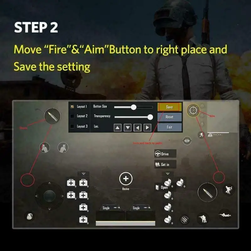 Отрегулируйте кнопки shoot и цель под тачпадом, «сохранить» ваши настройки