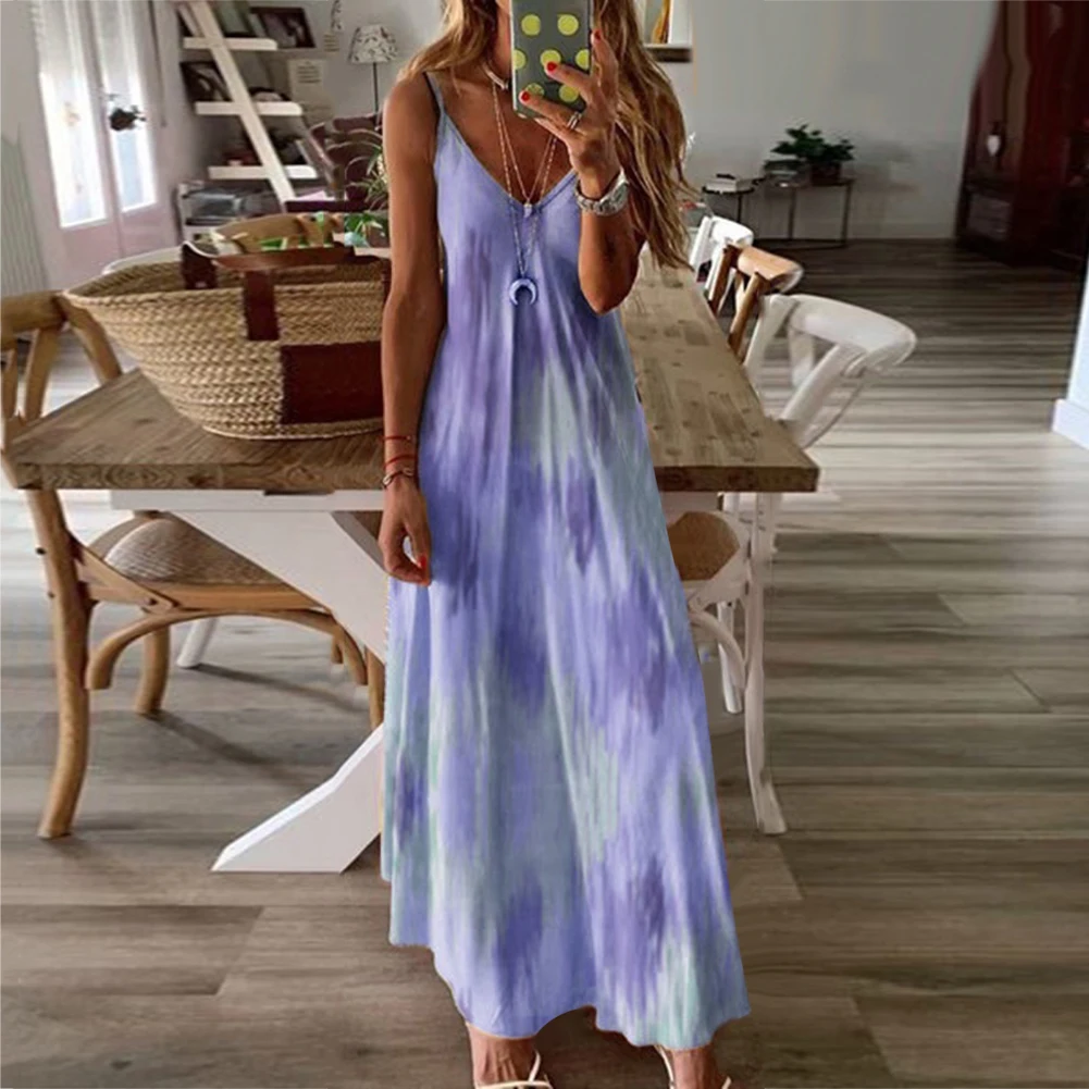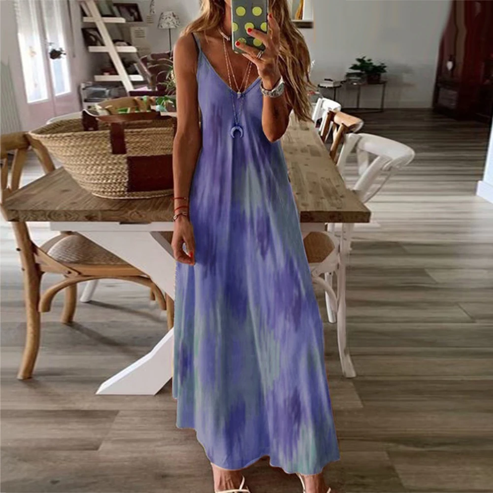 Женское повседневное Свободное длинное платье без рукавов с v-образным вырезом и большим подолом