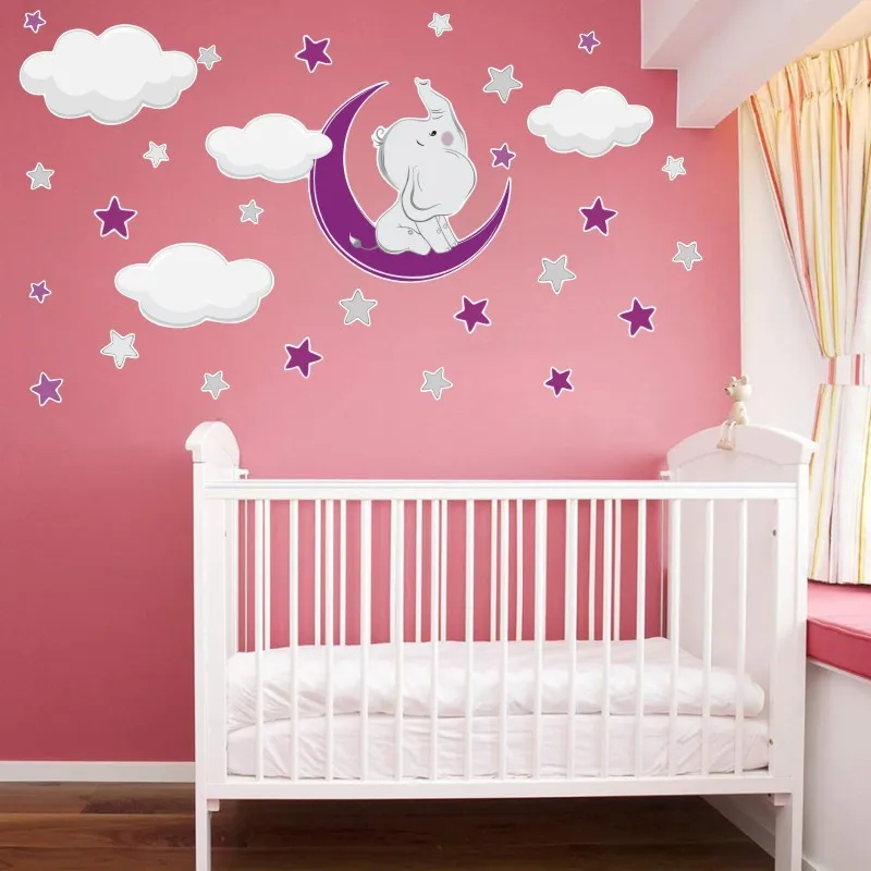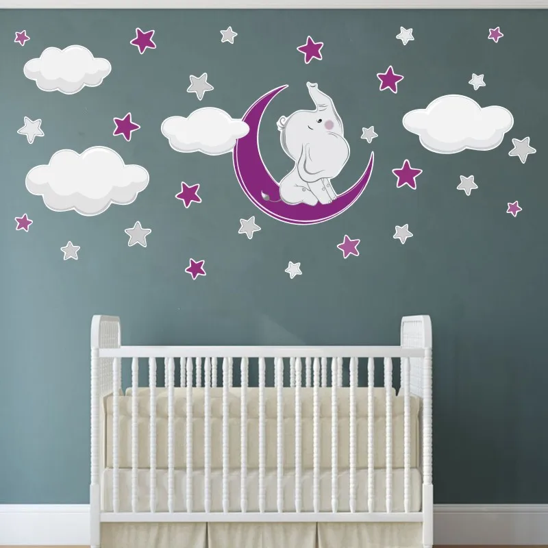 Мультяшный Детский слон, DIY стикер на стену, детская комната, спальня, граффити, наклейка, украшение, звезда, облако, ПВХ, стикер для животных, роспись