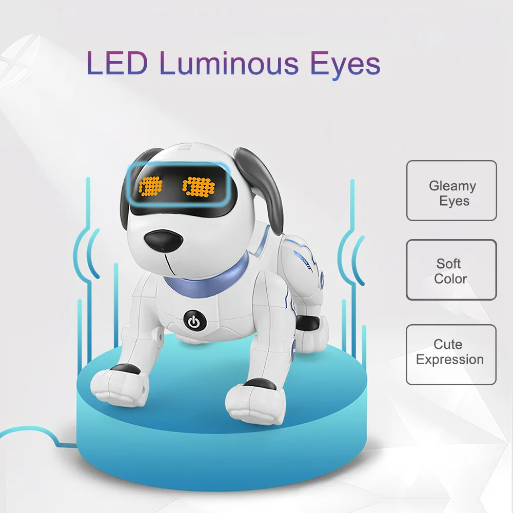 1.Infrared control: Use the controller to control the dog's movement within about 5m. 2.Intelligent programming and automatic display: The dog can be programmed to display the corresponding actions, thereby inspiring the creativity of children and exercising their abilities. 3.Touch control: By touching the dog's head, it will start with a simple interaction with you. 4.Voice commands: When you press the voice mode button, there are 7 voice commands that allow you to give verbal commands to the dog to stimulate your child ’s communication skills. 5.Dynamic music and dance: The dog will marvel at you at a dynamic pace with 4 different kinds of music. 6.More features: dogs can also stand upside down, push-ups, anger, squat, very interesting.
