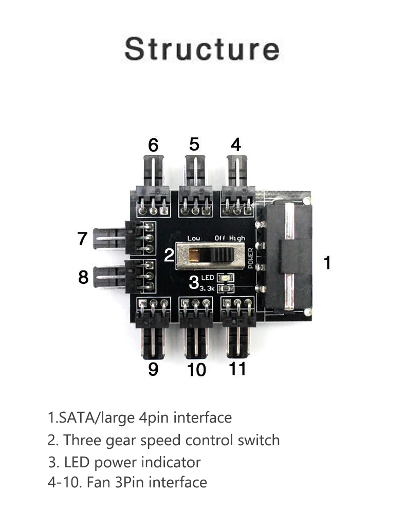 IDE Molex 1-8 способ охлаждения вентилятора сплиттер концентратор.