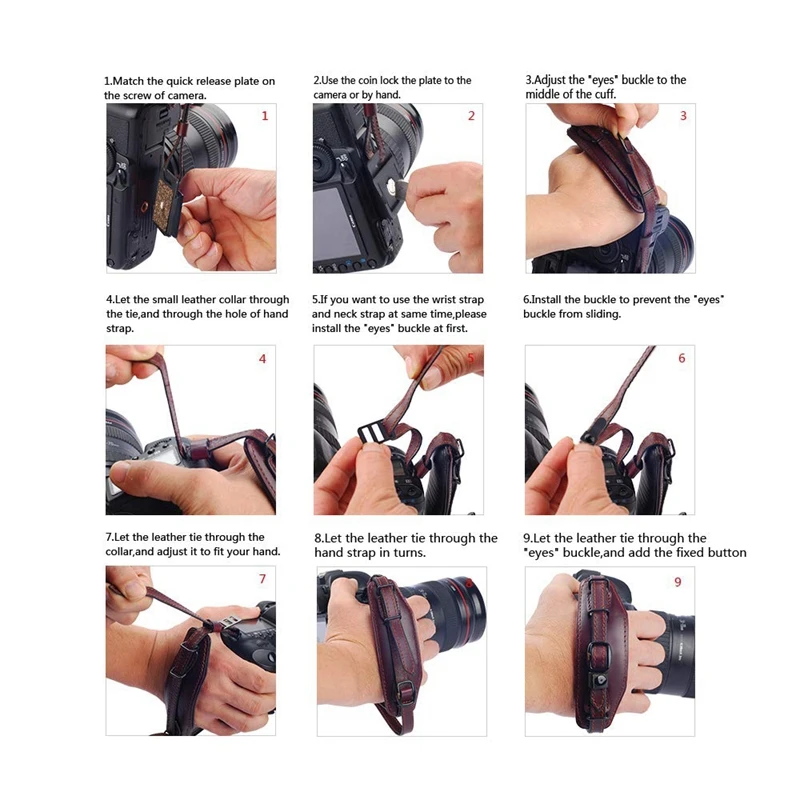 Пряжка для глаз позволяет использовать плечевой ремень камеры и ремешок на запястье одновременно