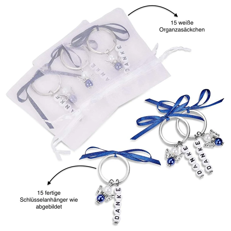 Подарки для гостей для свадеб и для многих других красивых случаев. 15 колец для ключей готовы выдать, каждый упакован в мешок из органзы